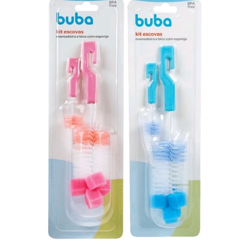 kit Escova para mamadeiras e bicos com esponja na ponta Buba