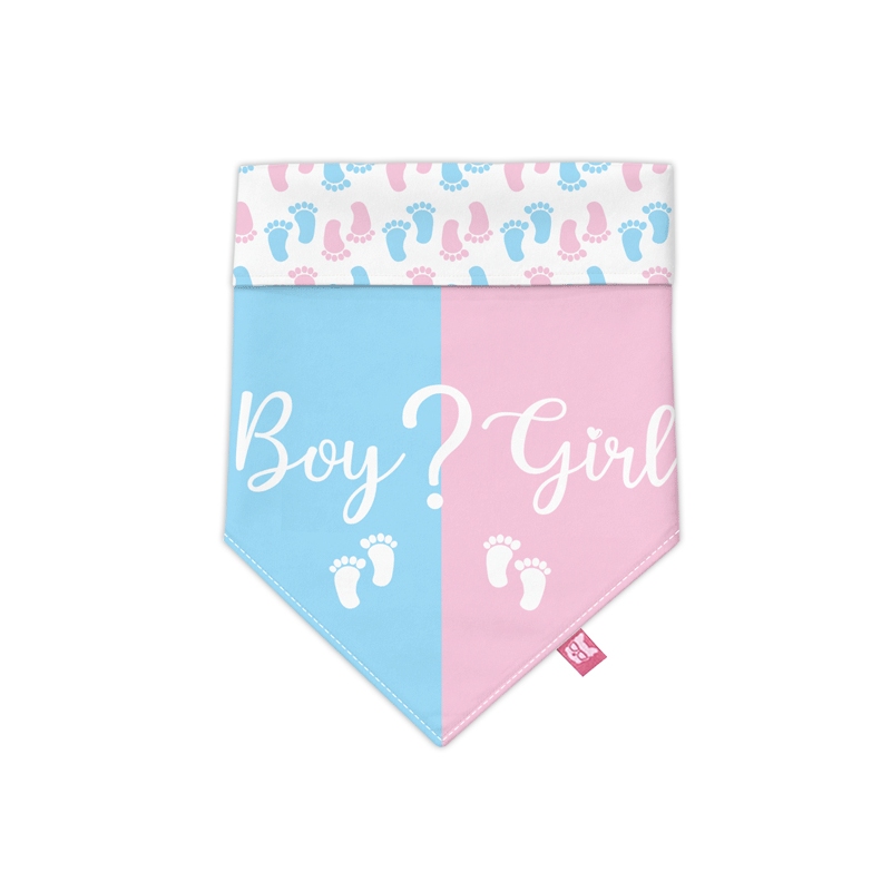 Bandana Pet Chá Revelação Boy Or Girl Pezinhos Dupla Face