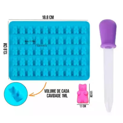 Molde de Silicone Multiuso para Produção de Doces Balas Gummy – Opções de Modelos com Conta Gotas