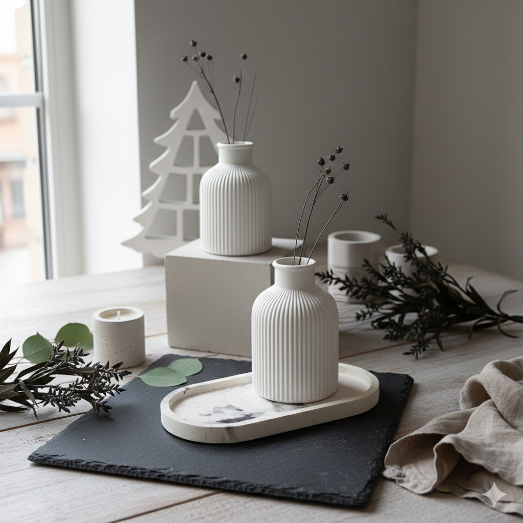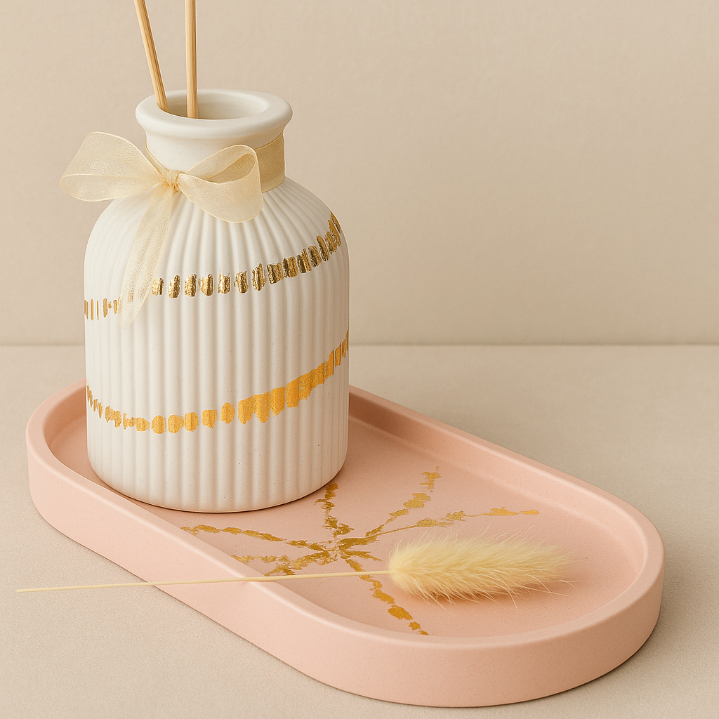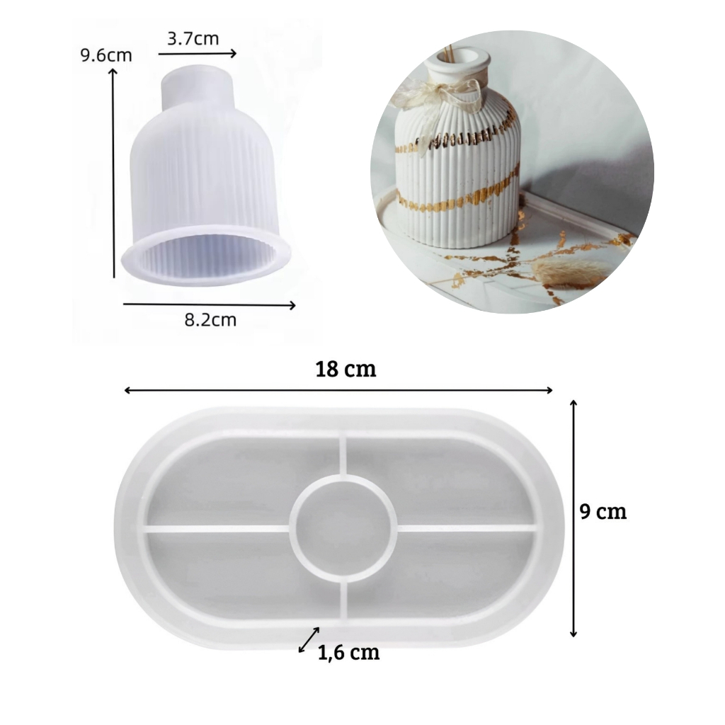 Kit Molde De Silicone Vaso Canelado + Bandeja Oval Para Gesso E Resina