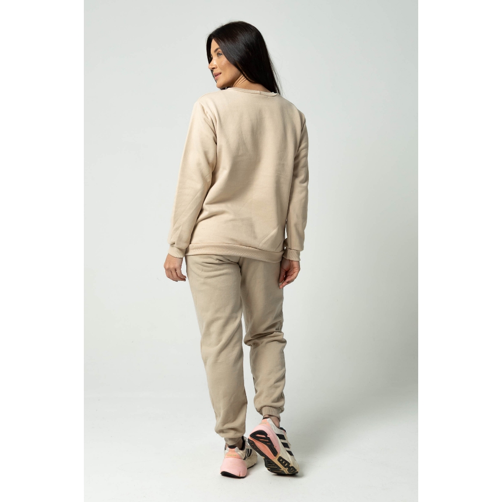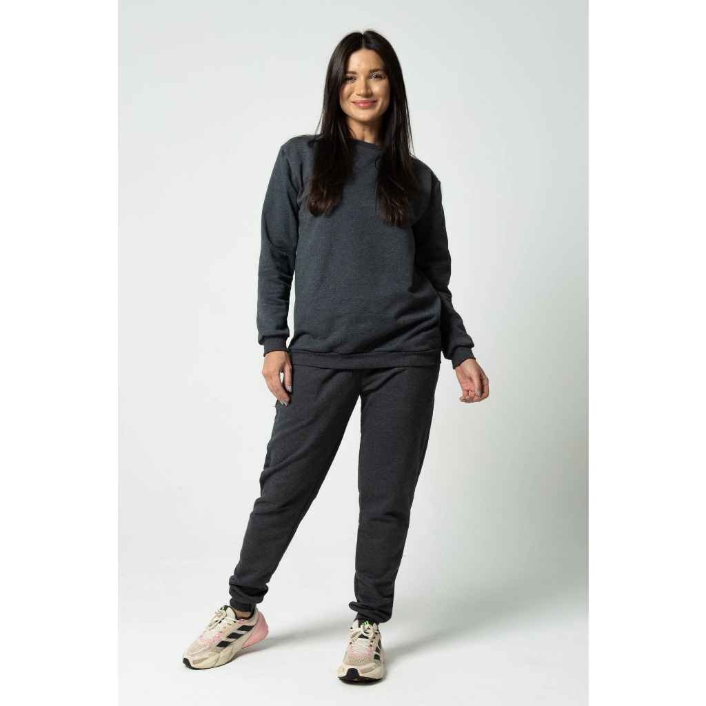 Conjunto Moletom Careca Feminino Gola Redonda + Calça Algodão Flanelado Inverno