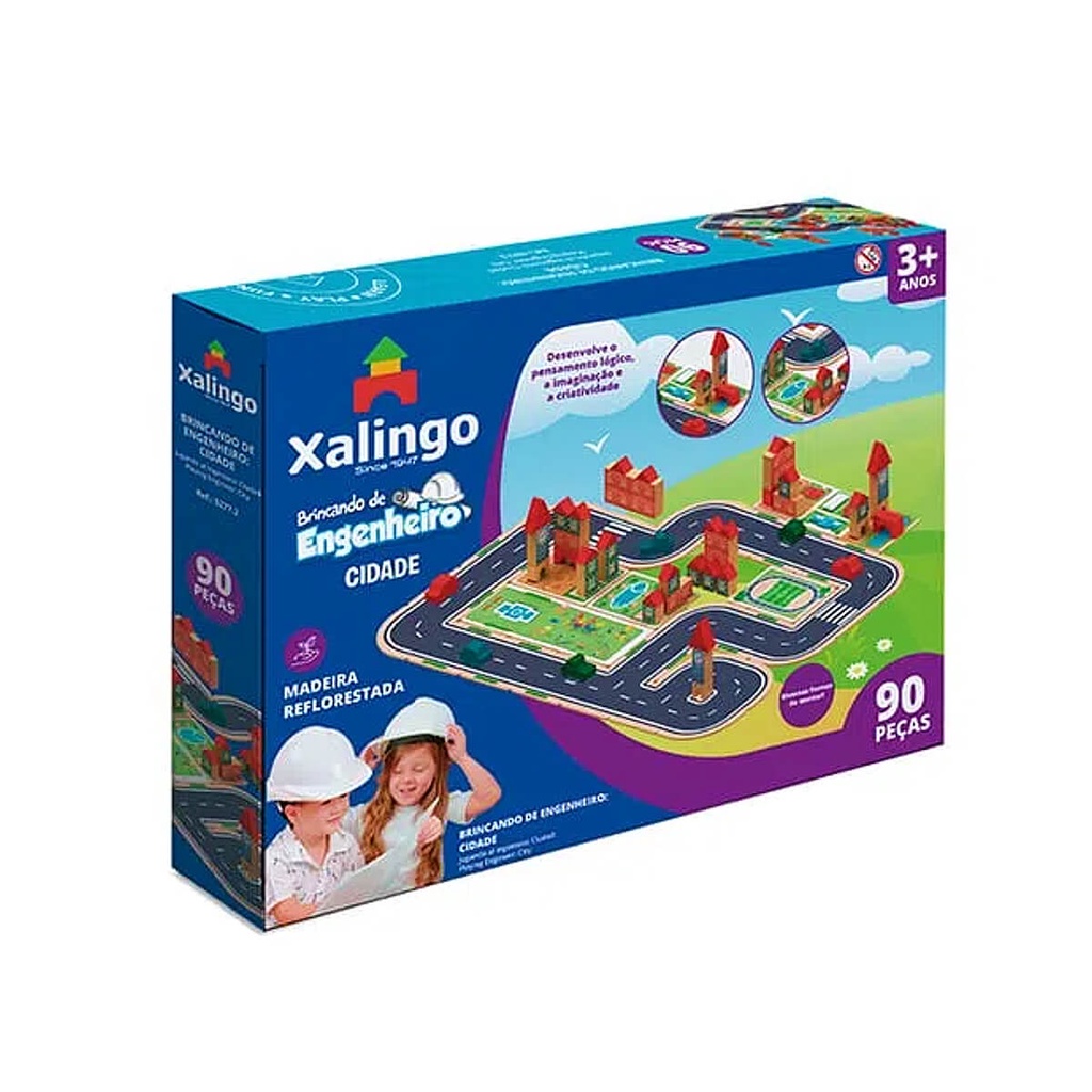 Brinquedo Construir Engenheiro Cidade 90 Peças Blocos Madeira +3 Anos Xalingo 52772
