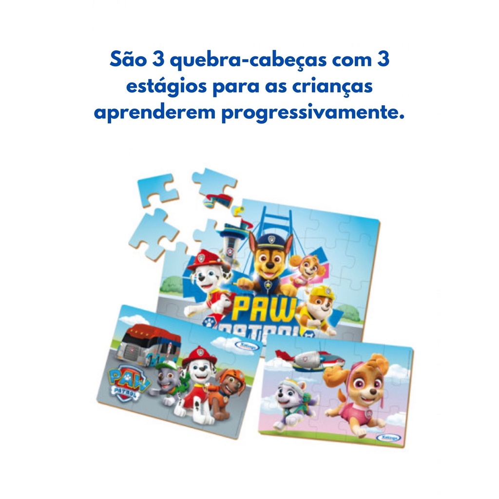 Quebra-Cabeça Infantil Progressivo Patrulha Canina 53 Peças MDF Xalingo - 1383.2