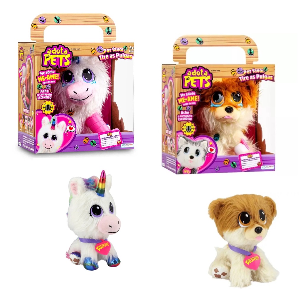 Kit Pelucias Adota Pets Dreamy e Lulu Com Acessórios Multikids