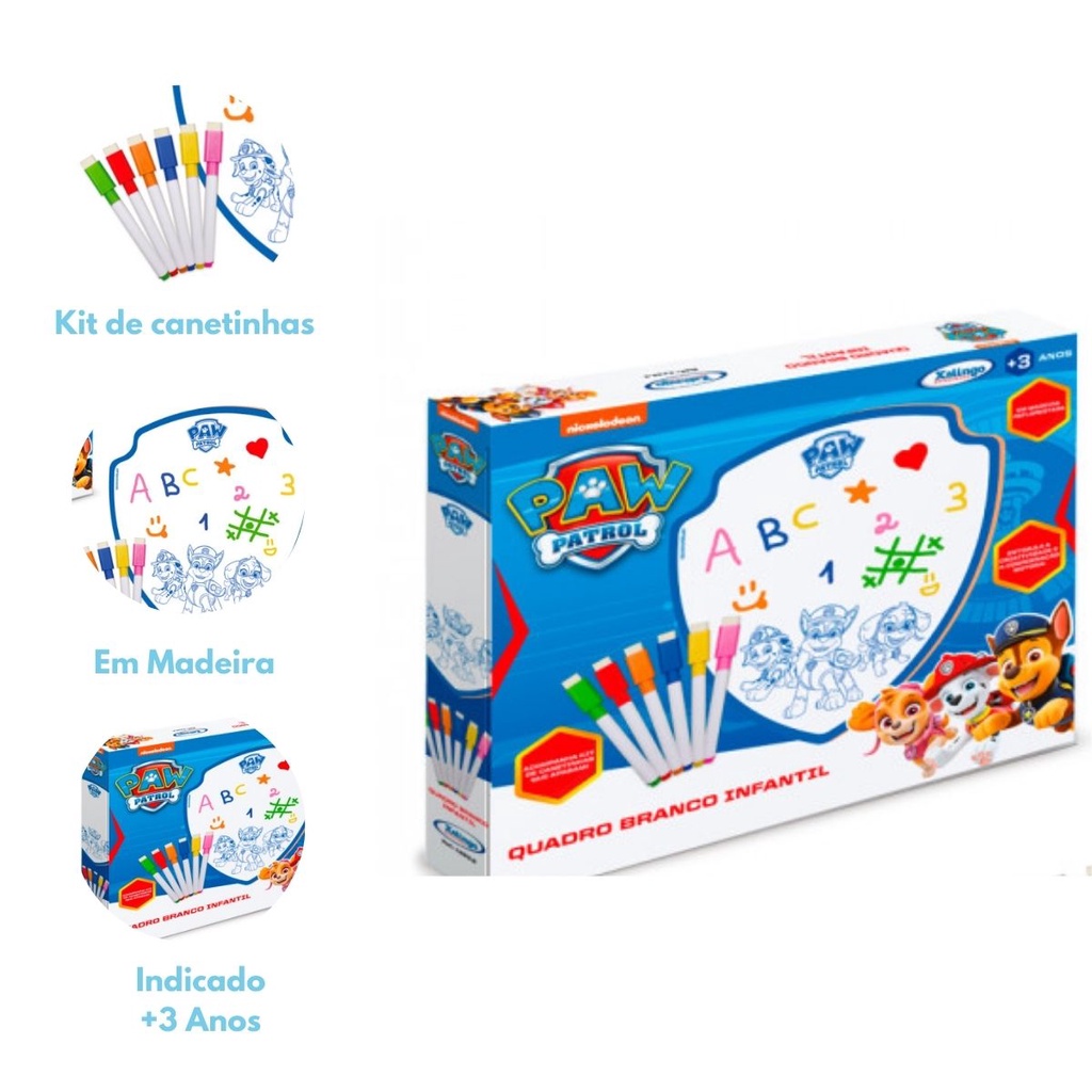 Brinquedo Quadro Branco Lousa Infantil Patrulha Canina C/ Kit de Canetinha Coloridas Xalingo - 1393.2