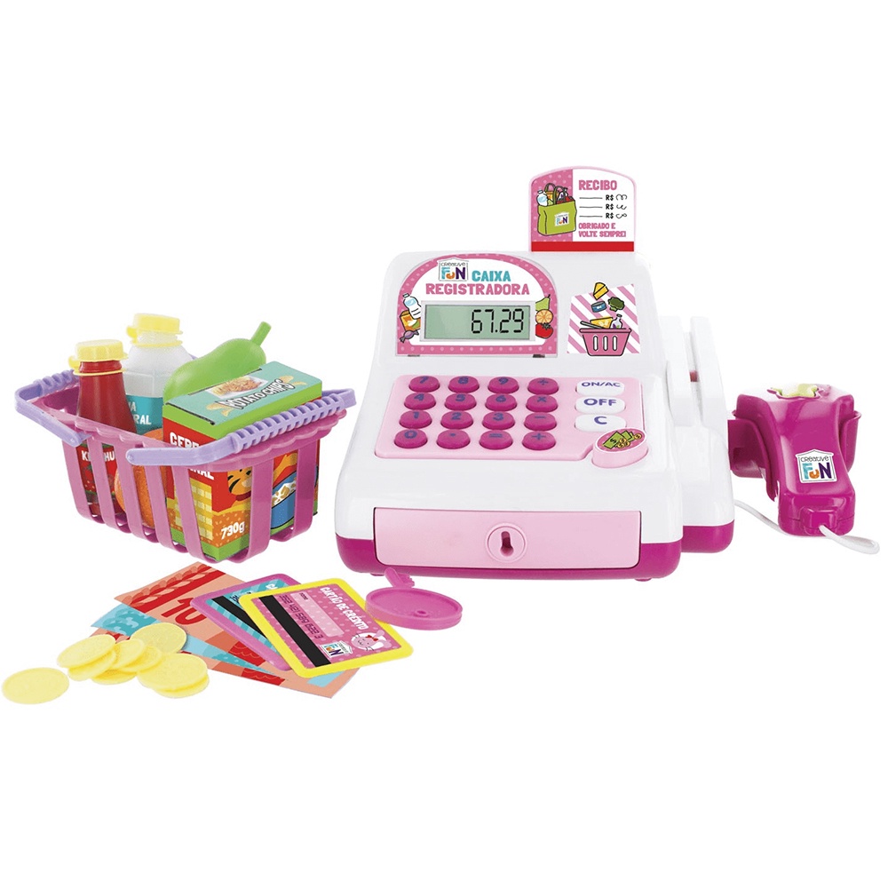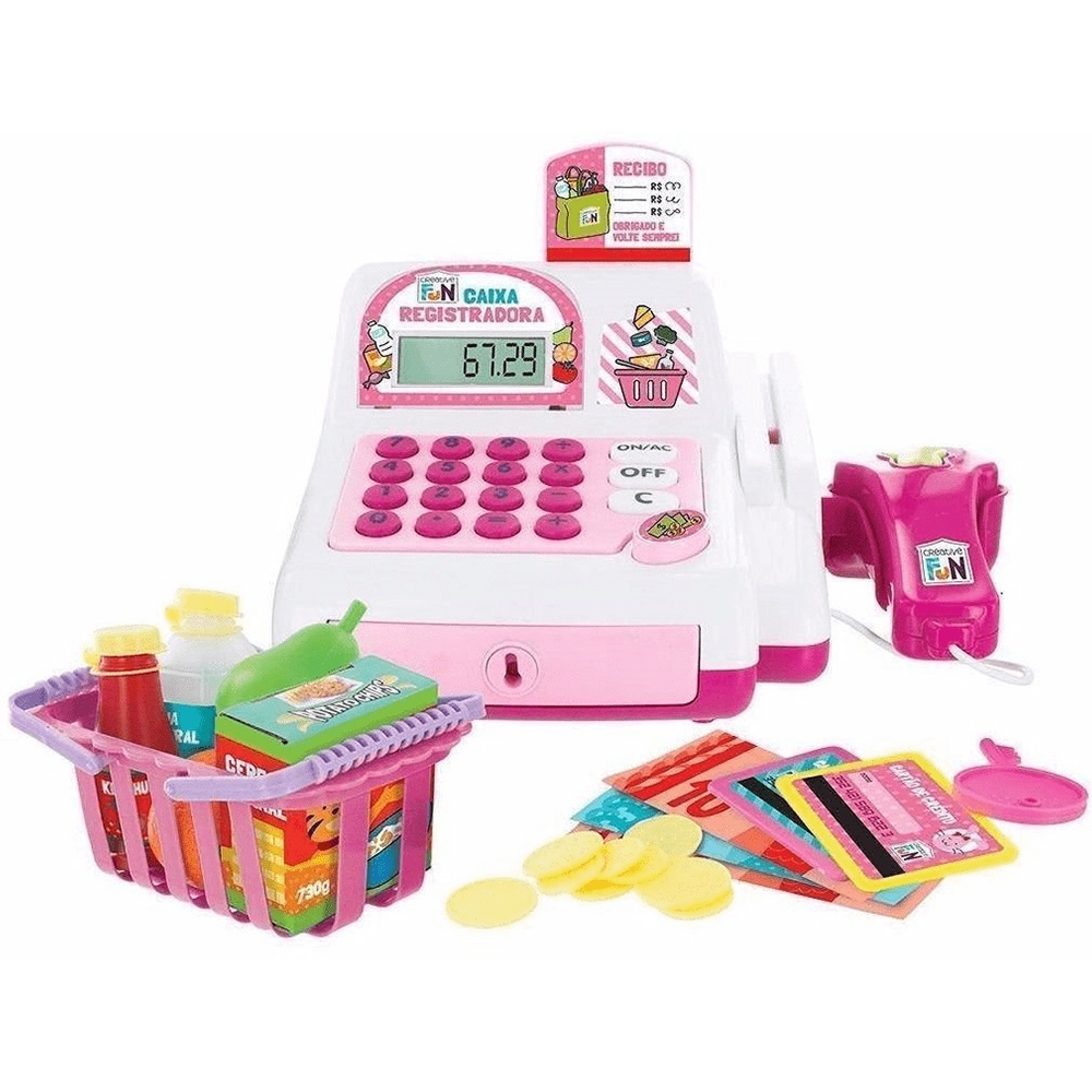 Brinquedo Caixa Registradora Creative Fun Rosa Com Acessórios e Mini Alimentos Multikids - BR387