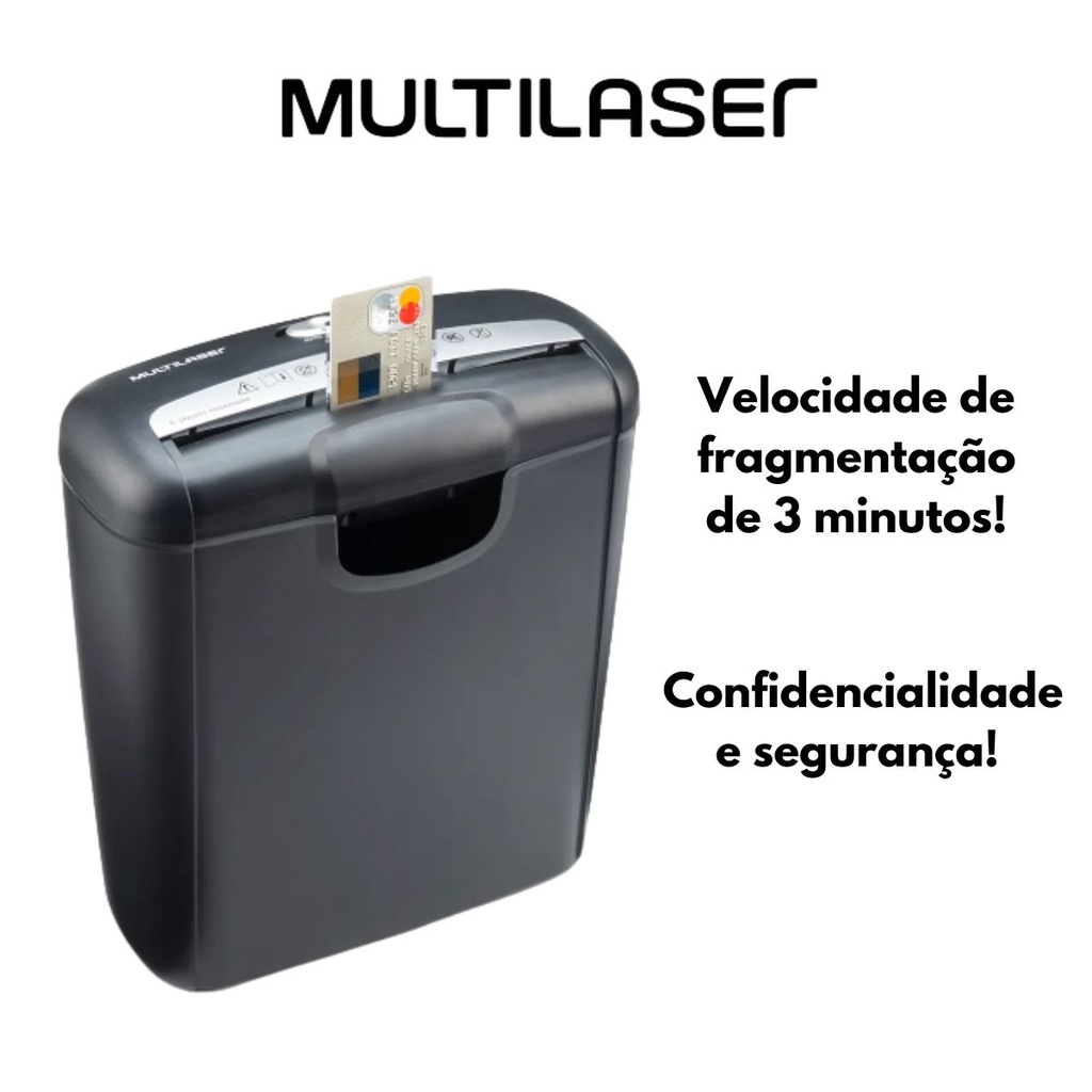 Fragmentadora de Papel e Cartão 6 Folhas em Tiras 10L 127V Multilaser OF009