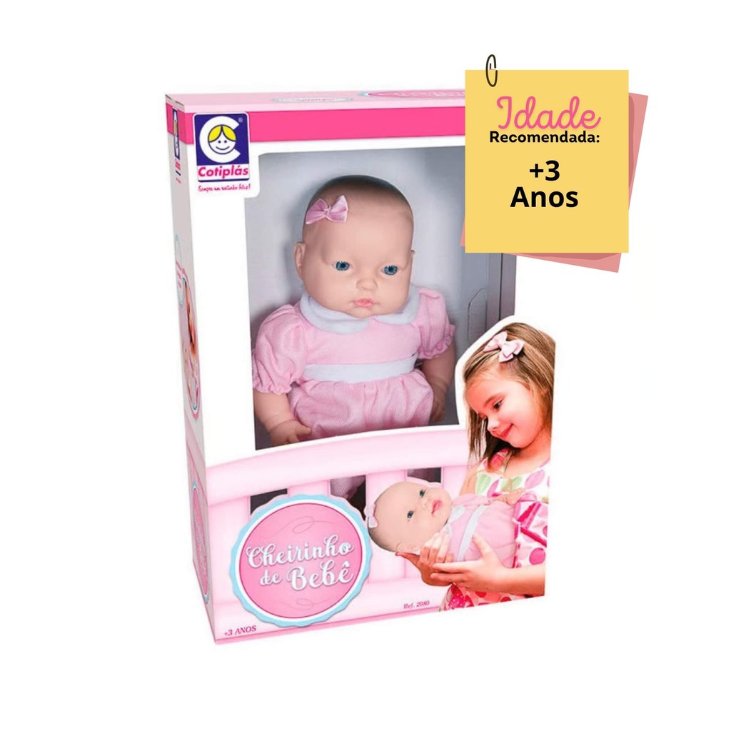 Boneca Cheirinho de Bebe em Vinil 36cm com Vestidinho Rosa Cotiplas - 2080