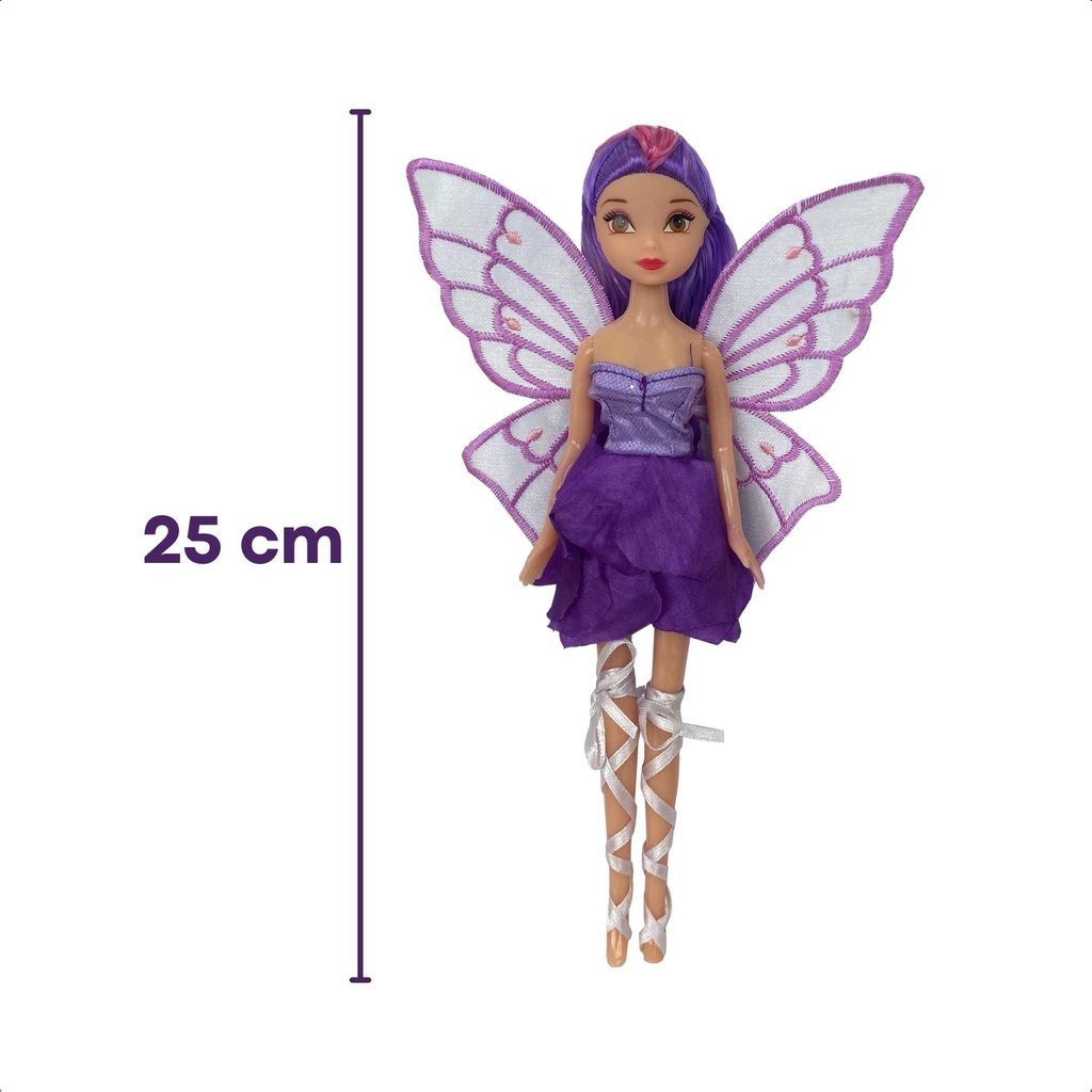 Boneca Fada Encantada Sortida 23 CM Articulada Brinquedo Infantil Asas em Tecido Unitária - Fenix Brinquedos FEN-168