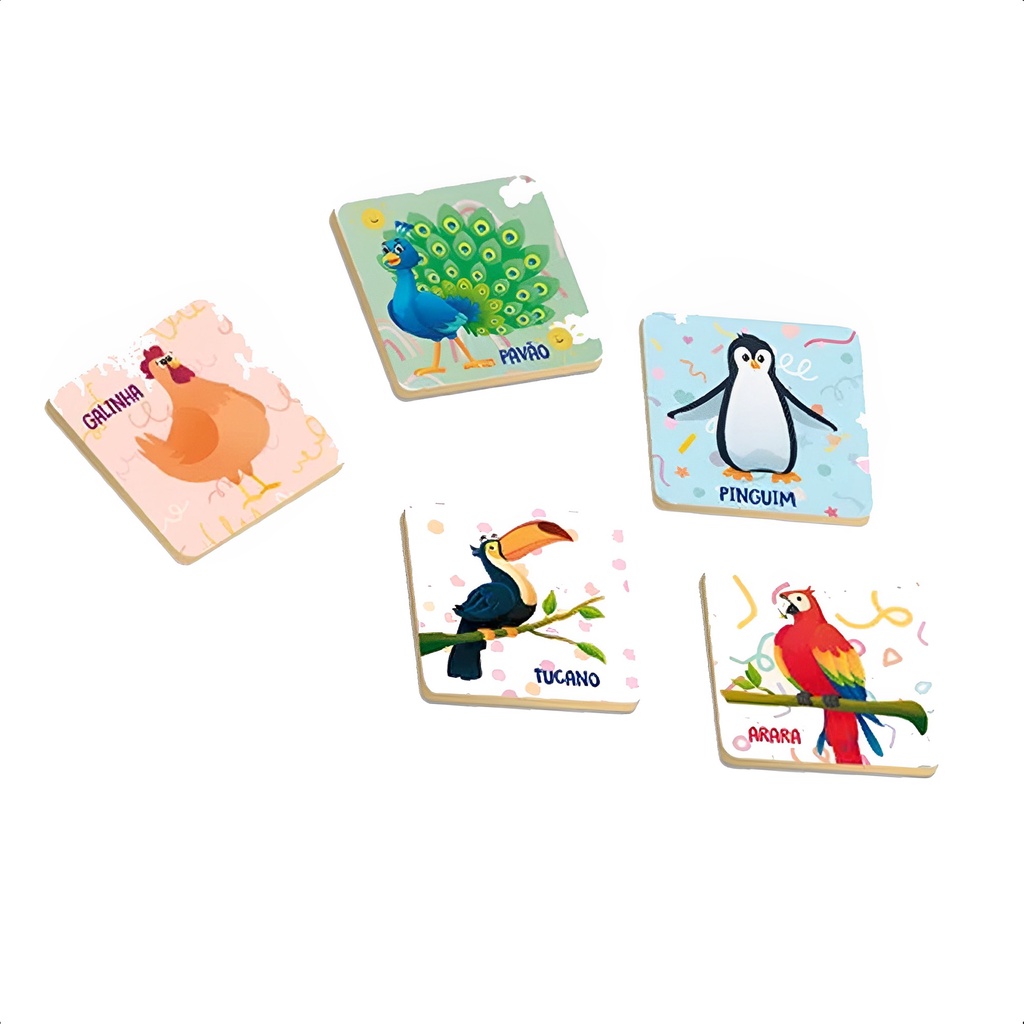 Jogo Da Memória Infantil +3 Anos 24 Peças Aves Passatempo Em Madeira Reflorestada Xalingo - 17376