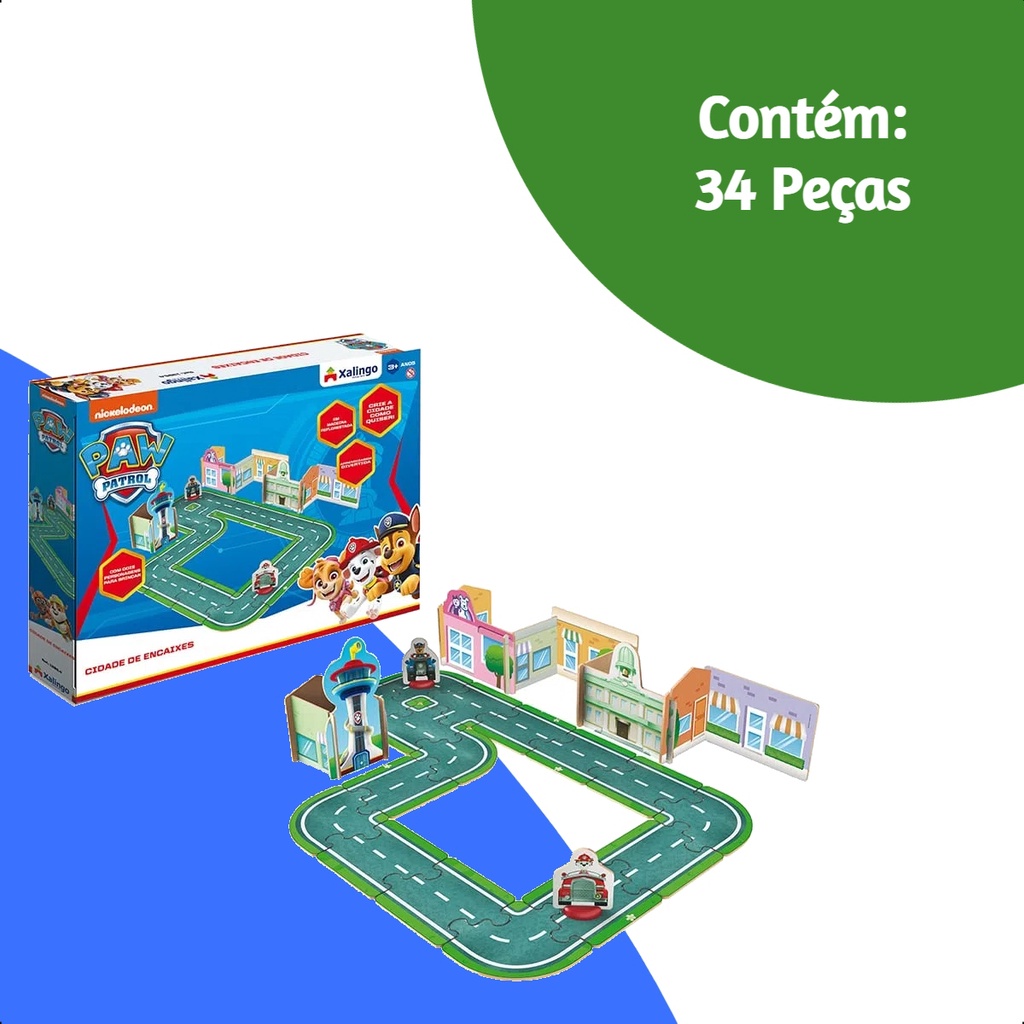 Cidade de Encaixes Patrulha Canina 34 Peças de Madeira Reflorestada +3 Anos Xalingo - 13954