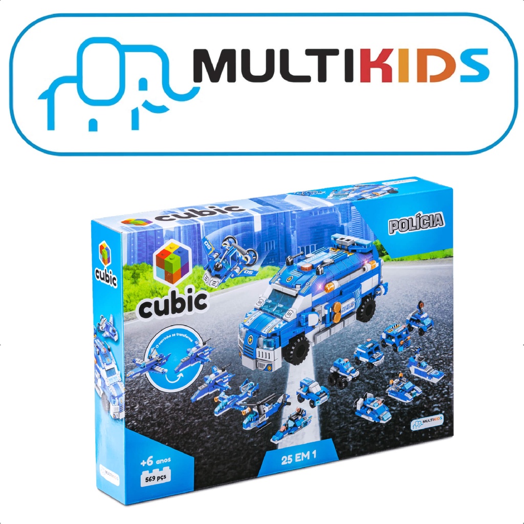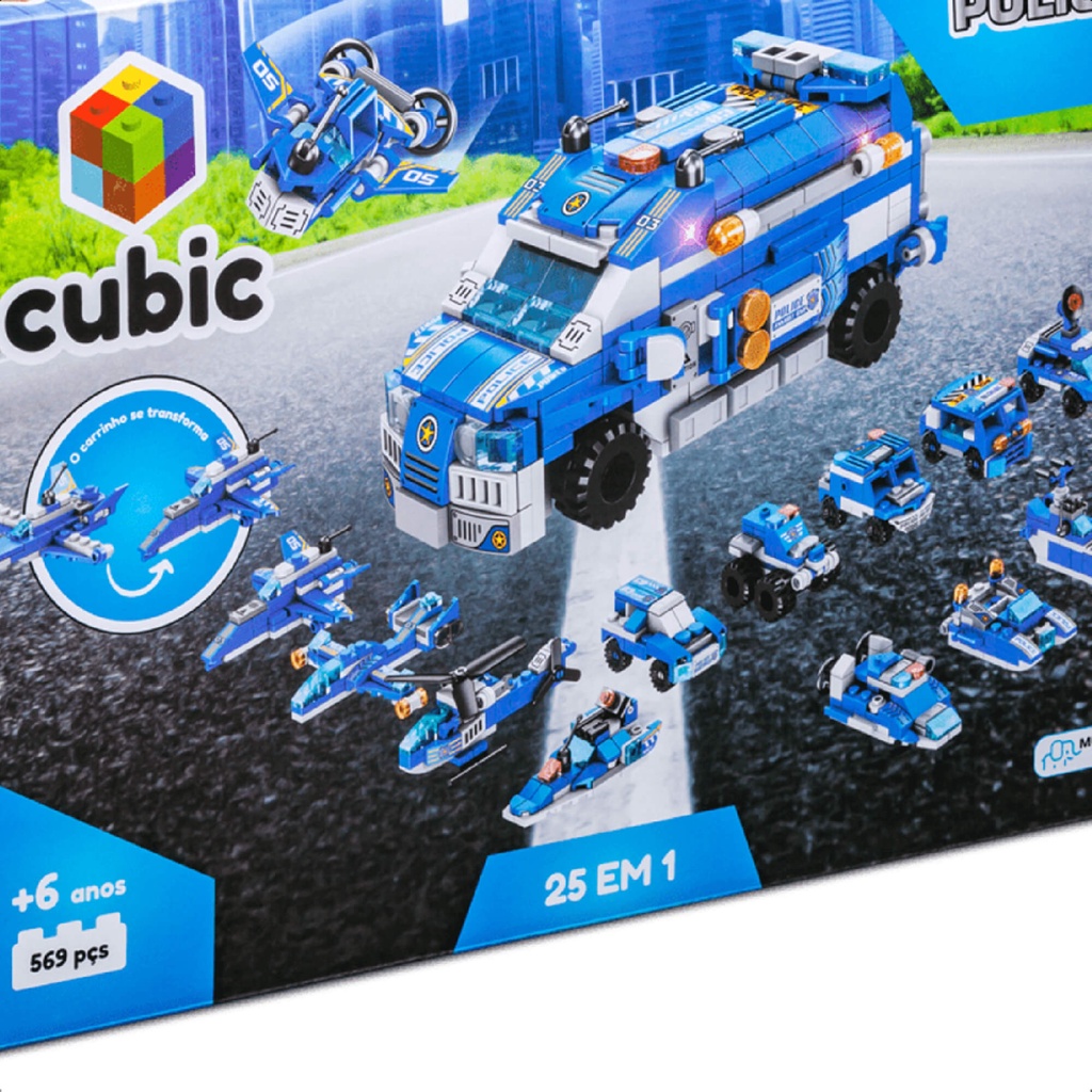Brinquedo De Encaixe Cubic 25 Em 1 Polícia 569 Peças 24 Diferentes Tipos De Veículos + De 6 Anos Multikids - BR1619