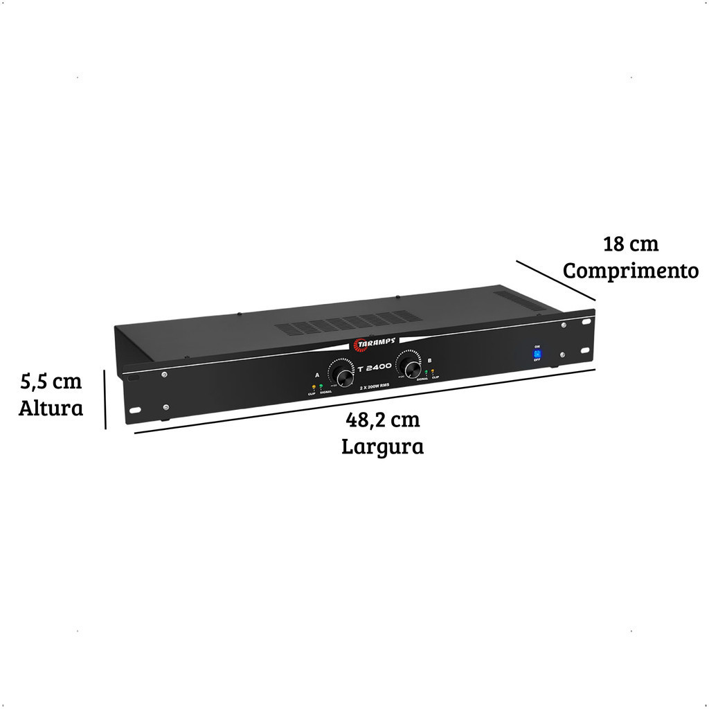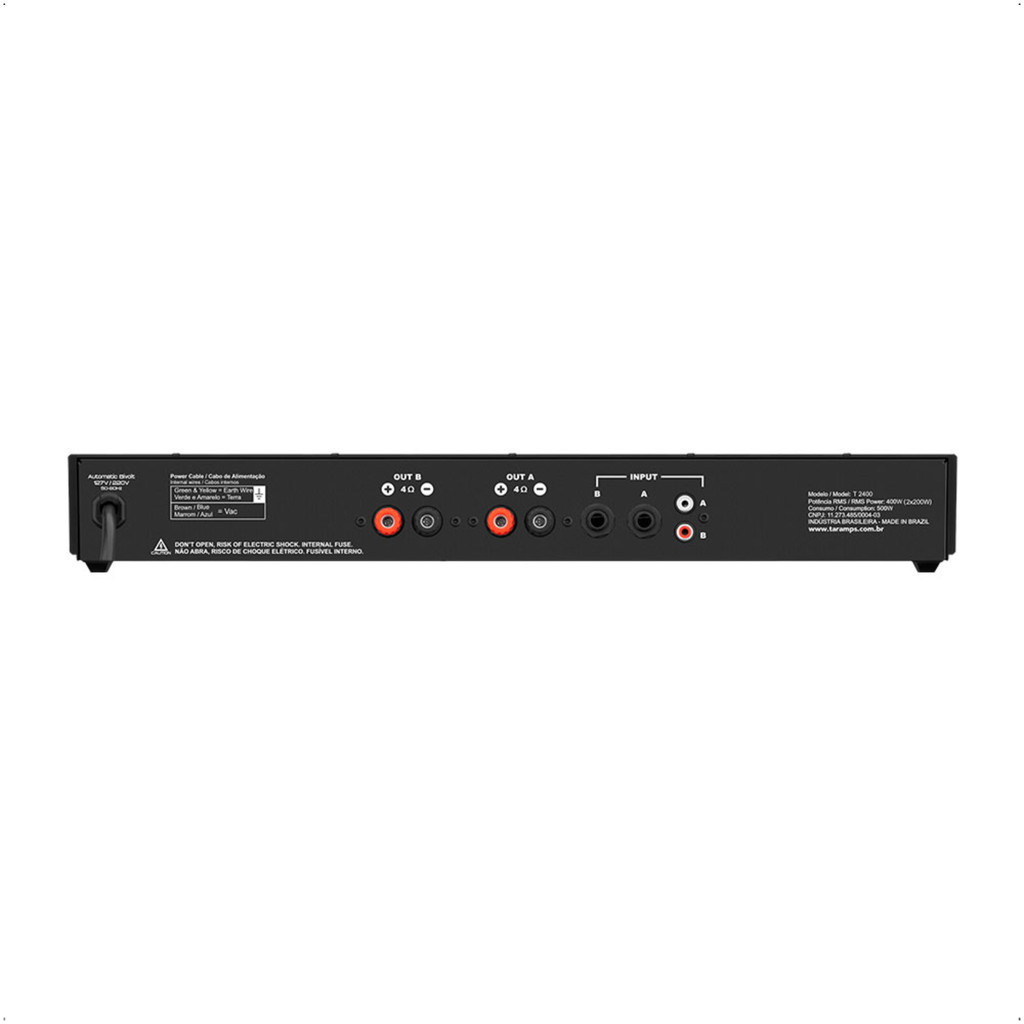 Amplificador Profissional T2400 400W Rms Receive Cor Preto Potência Saída Rms 400 W Taramps 901940