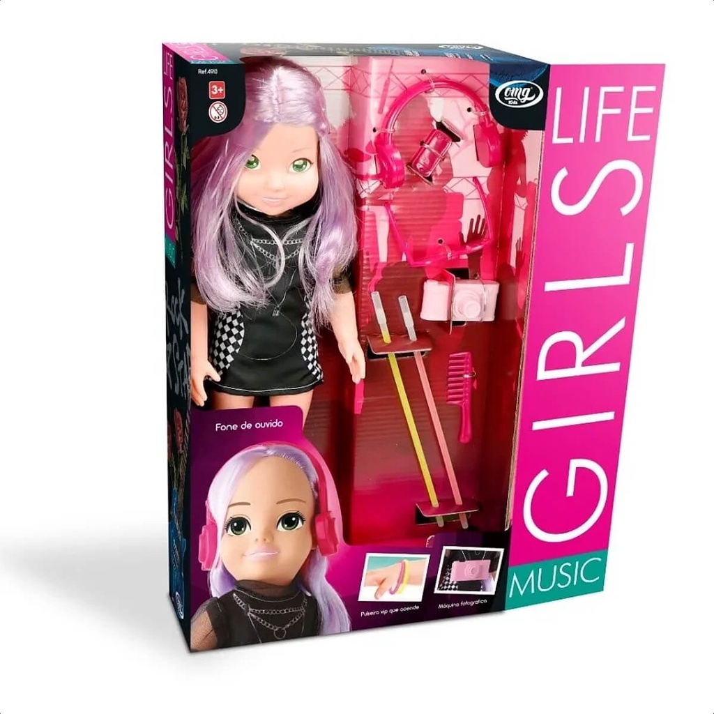 Brinquedo Boneca Girls Life Music 100% Vinil Com Acessórios Faz de Conta Brincadeira Menina Omg Kids - 4910