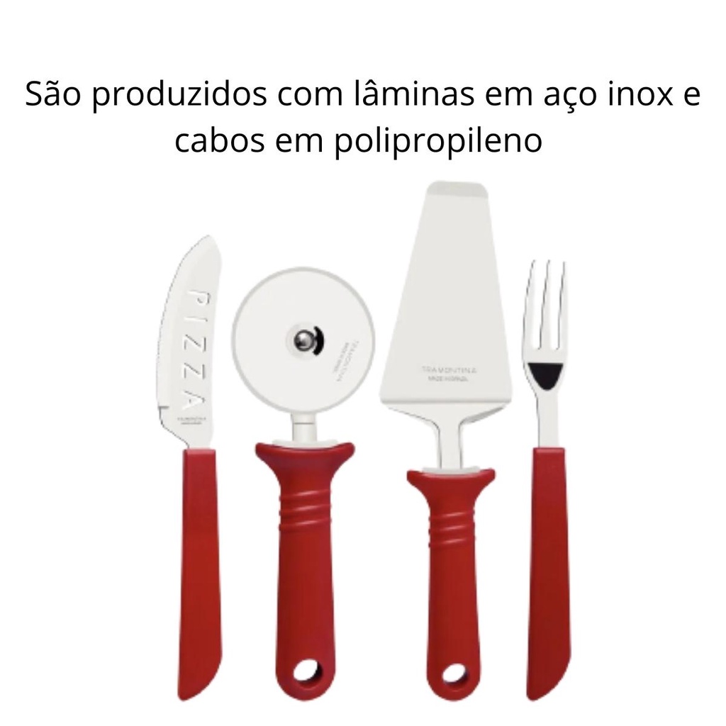 Kit Conjunto Pizza Tramontina com Lâminas em Aço Inox e Cabos de Polipropileno Vermelho 14 Peças 25099722