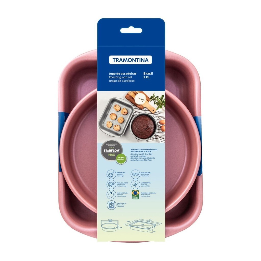Jogo de Assadeiras 2 Peças em Alumínio com Revestimento em Antiaderente Starflon Rosa Tramontina - 20099486
