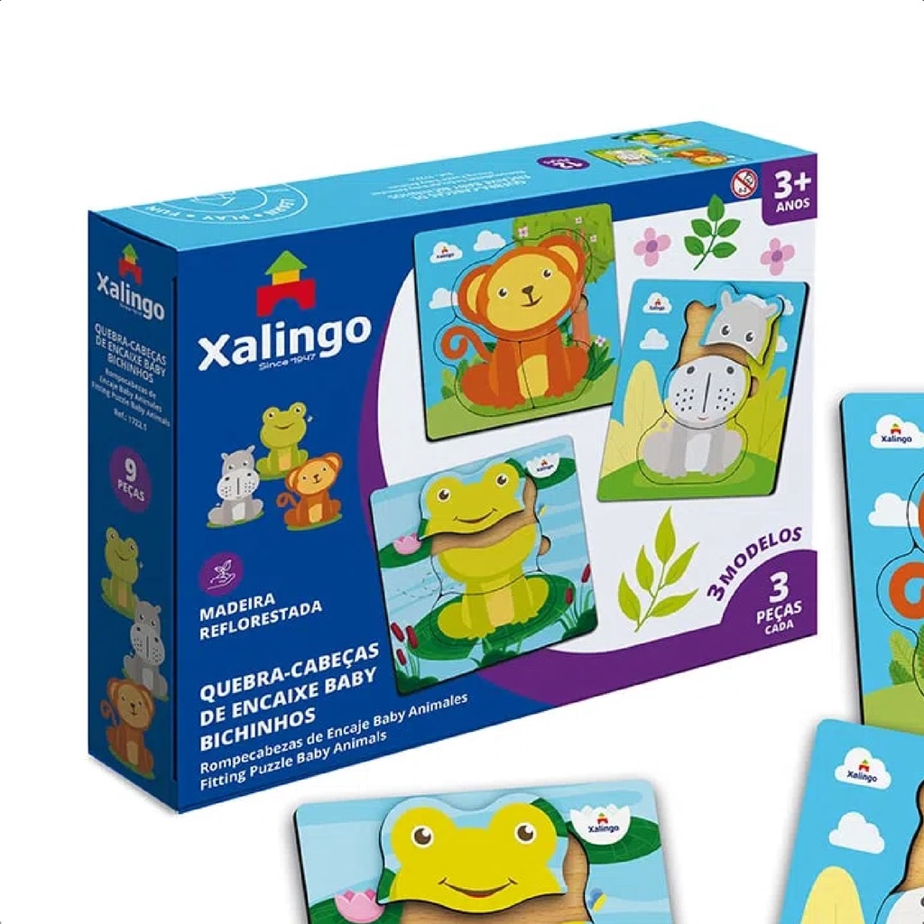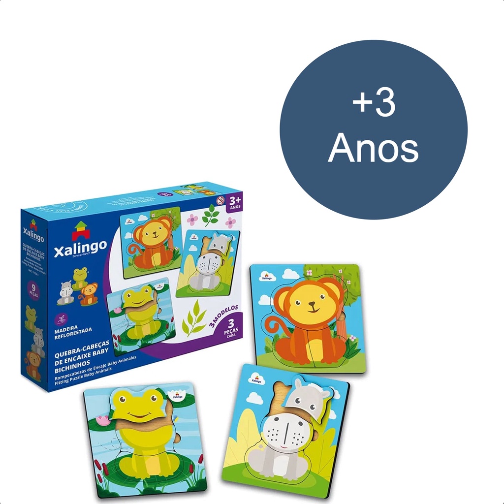 Quebra-Cabeça Infantil De Encaixe Baby Bichinhos 12 Peças Em Madeira 15x5x15 cm +3 Anos Xalingo