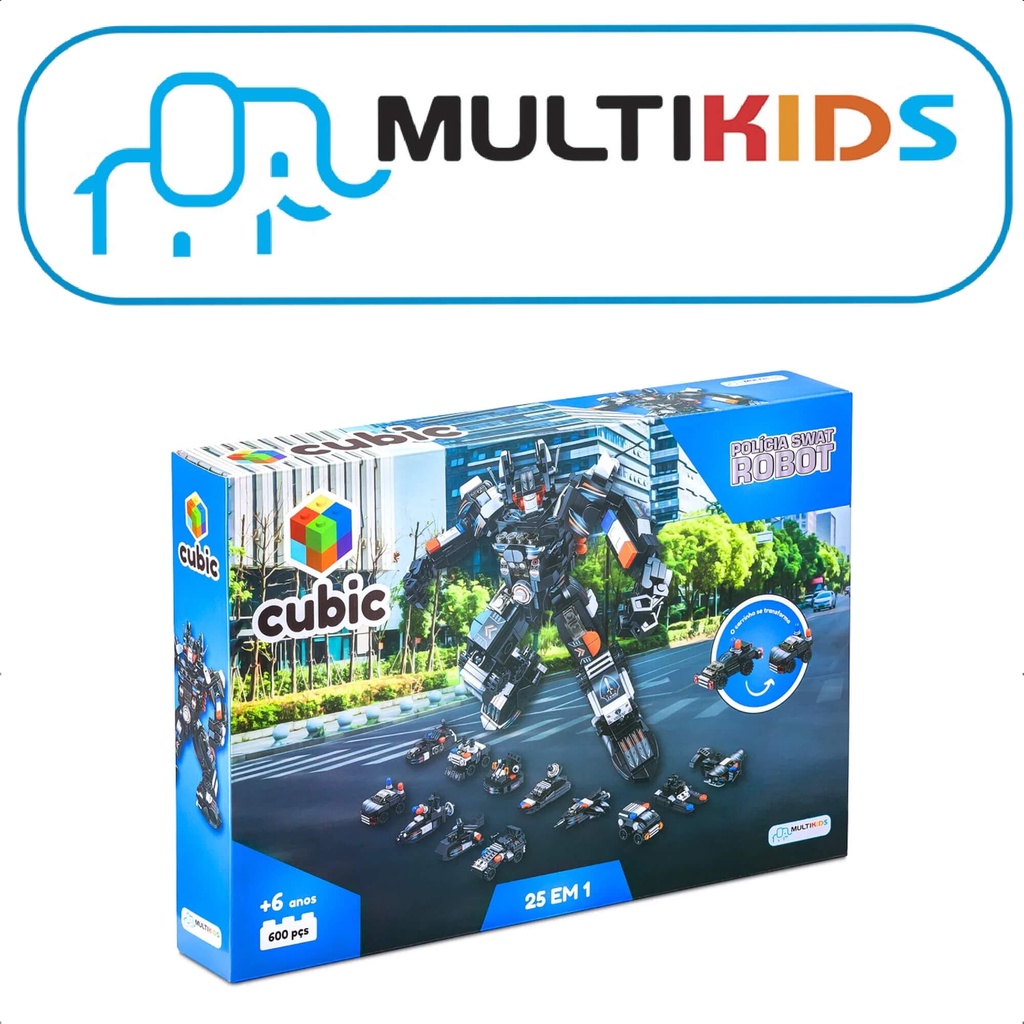 Brinquedo De Montar Cubic 25 Em 1 Polícia Swat Robot 600 Peças Acima De 6 Anos Multikids - BR1616