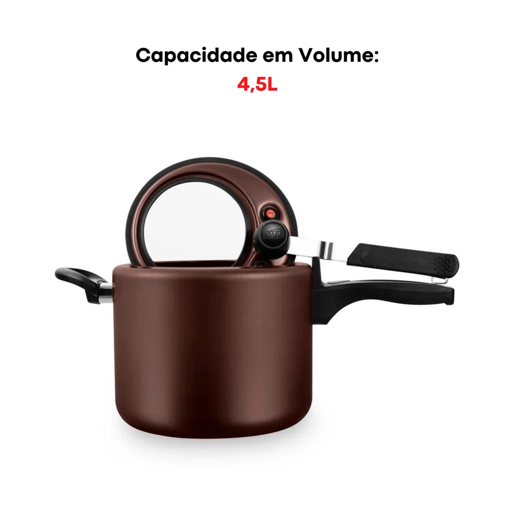 Panela De Pressão Antiaderente 4,5L Com Visor de Vidro Cor Marrom Chocolate MTA - 9195