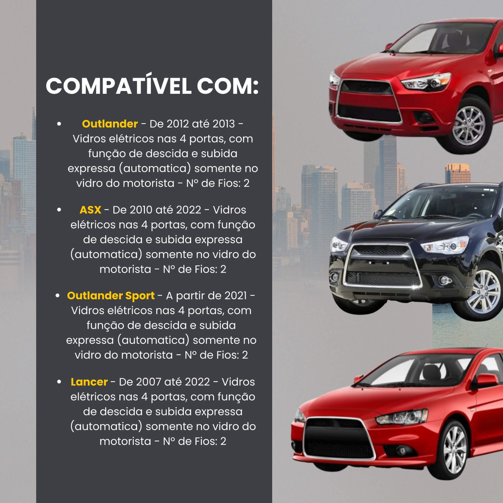 Módulo Automação de Vidros Elétricos compatível com Outlander/ASX/Lancer Tury - PRO 4.43 AE