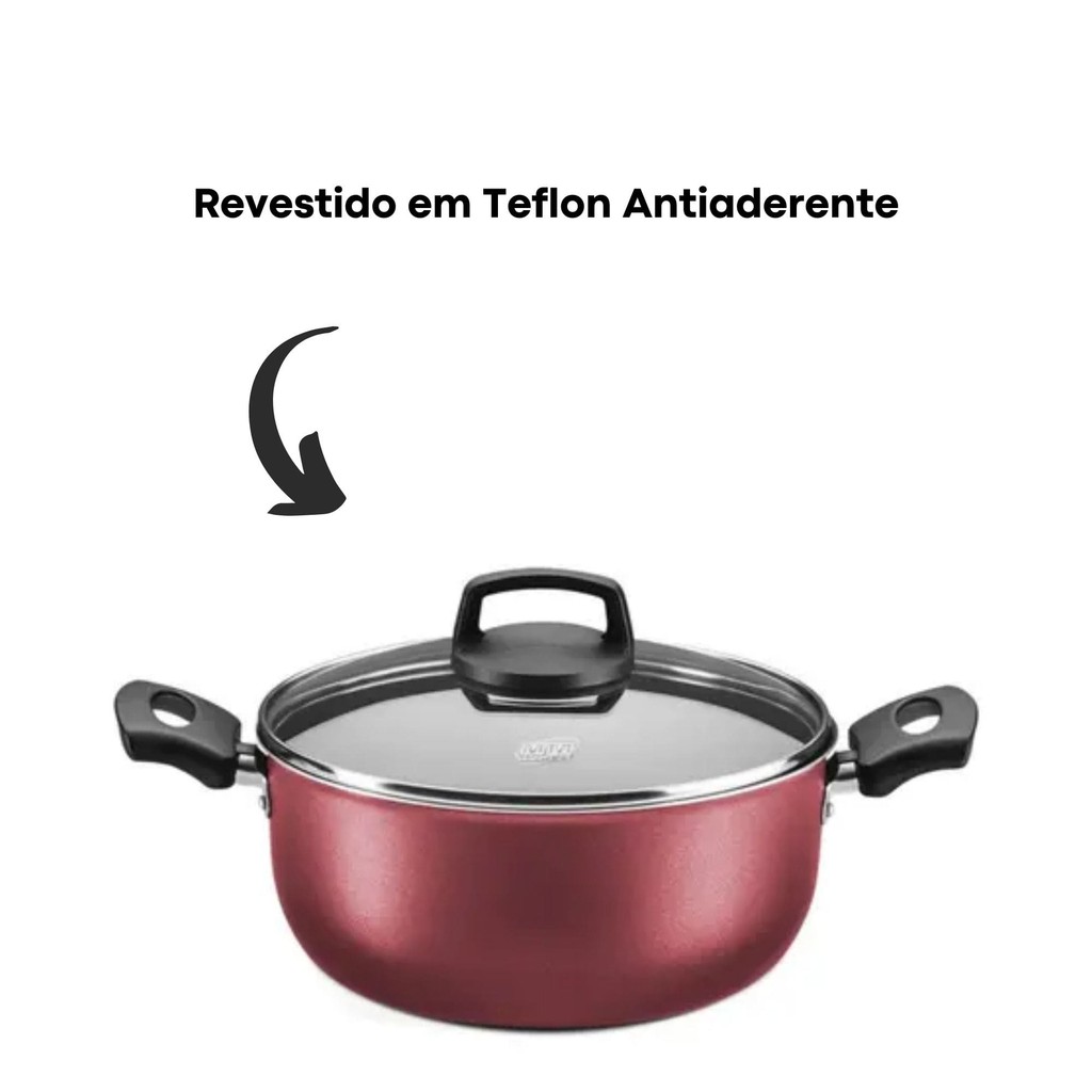 Jogo de Panelas Estrela 10 Peças Cor Cereja em Alumínio Antiaderente e Tampa de Vidro MTA - 9803
