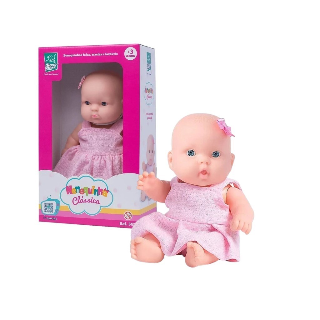 Boneca Nenequinha Clássica Vestido Pink Super Toys - 342