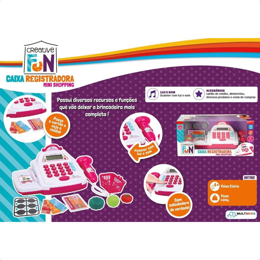 Caixa Registradora Mini Shopping Creative Fun Rosa Com Acessórios Multikids - BR1182