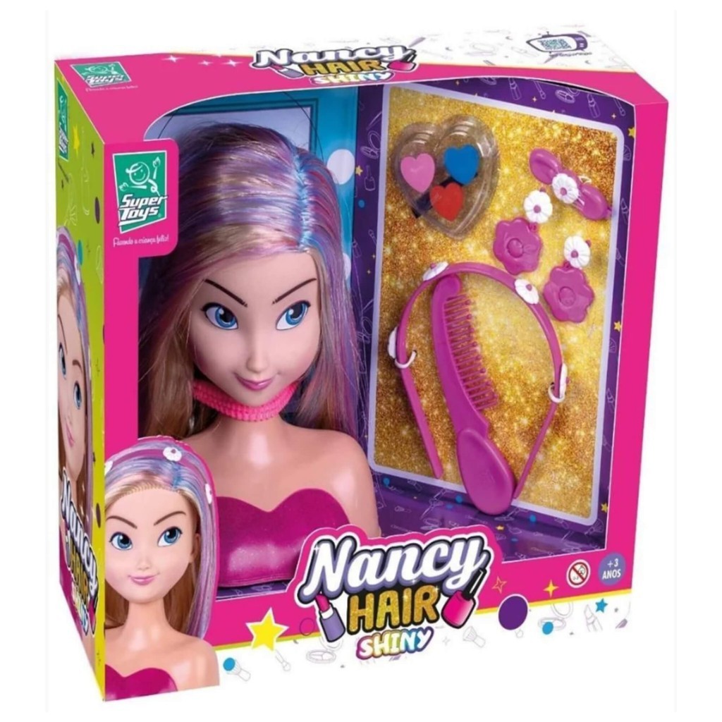 Boneca Super Estilosa Para Pentear e Maquiar Busto Nancy Hair Shiny Super Toys - 518