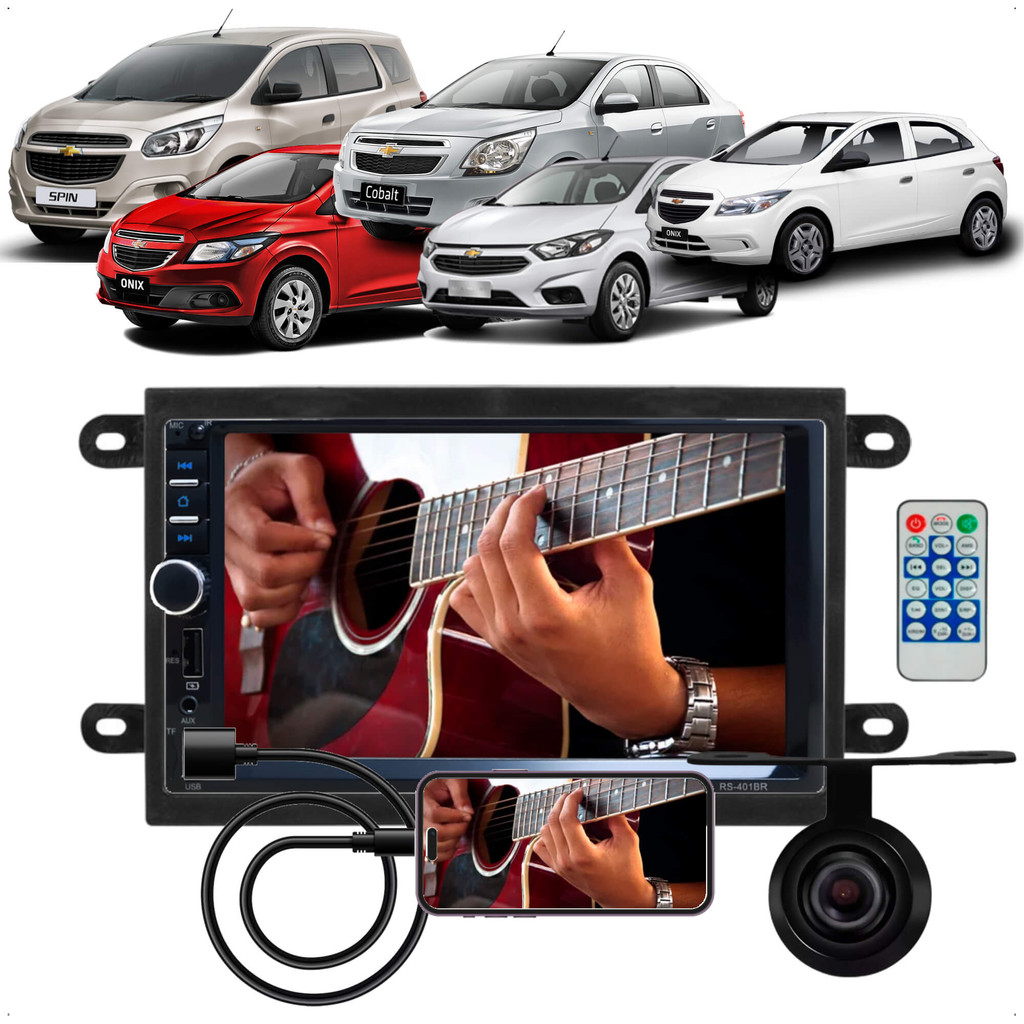 Kit Multimídia MP5 Onix Cobalt Prisma Spin + Moldura + Câmera de Ré Roadstar - RS401BR MI