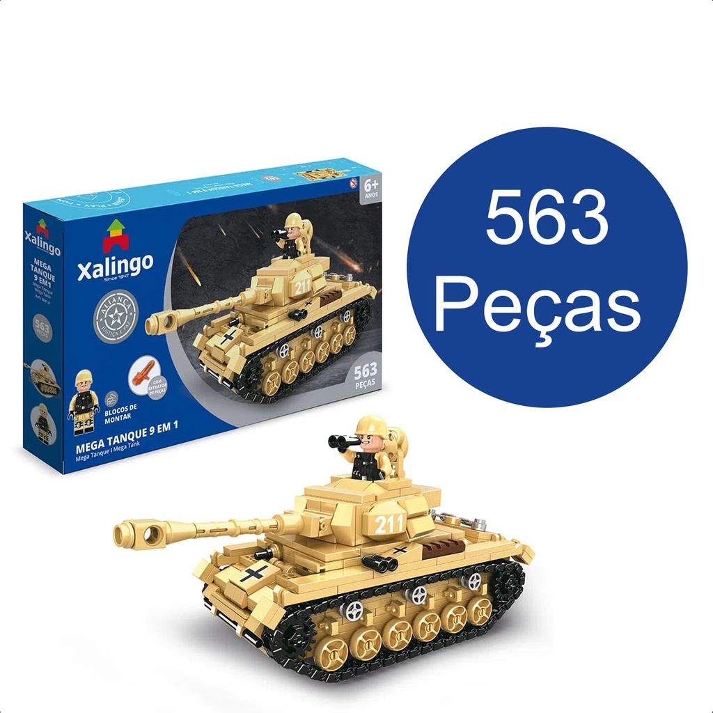 Brinquedo De Encaixe 563 Mega Tanque +6 Anos Peças Aliança Justiça E Paz 9 EM 1 Xalingo - 28410