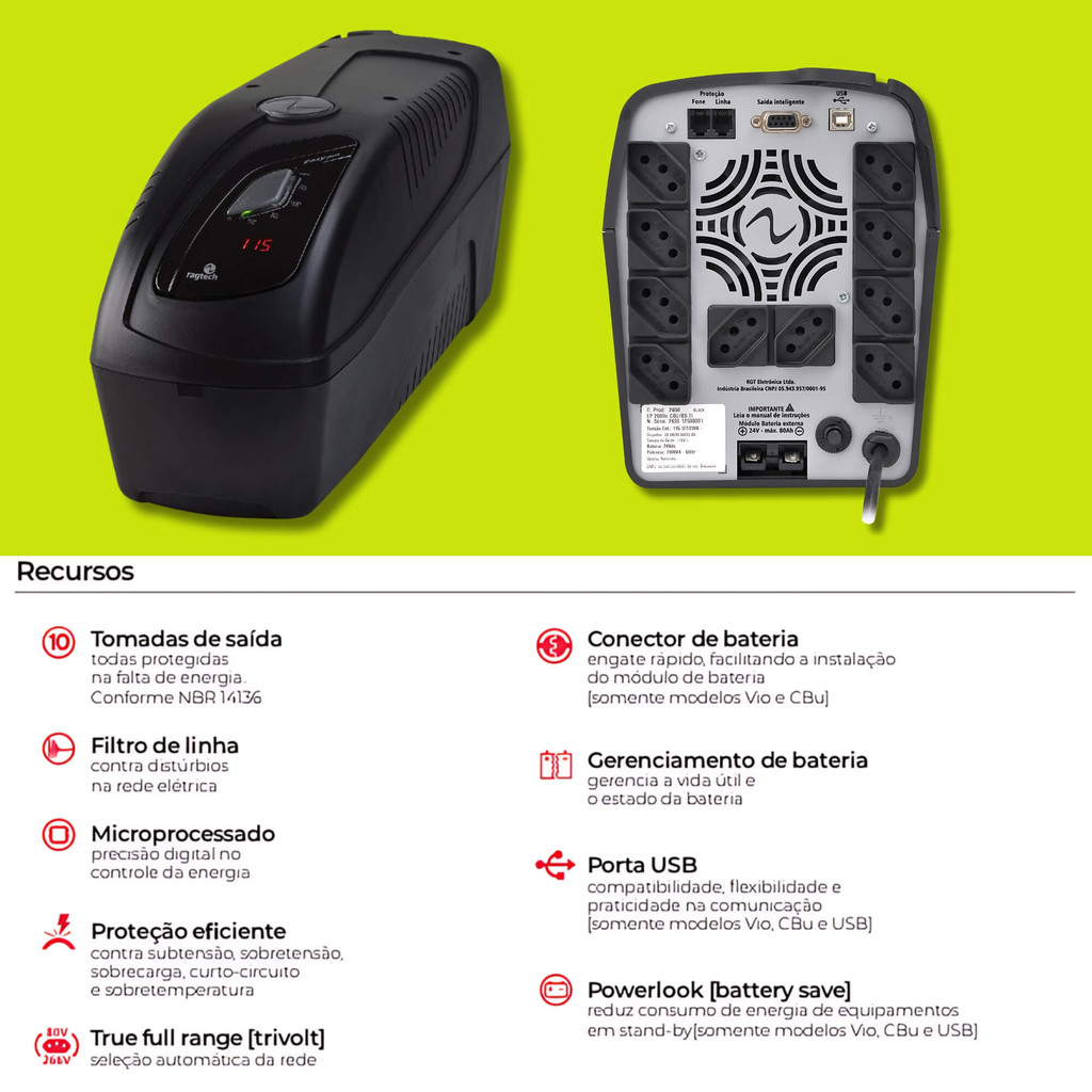 Nobreak Easy Pro 3200VA Senoidal Entrada Trivolt Saída 115V Bateria 10 Tomadas Ragtech - 20NEP4061