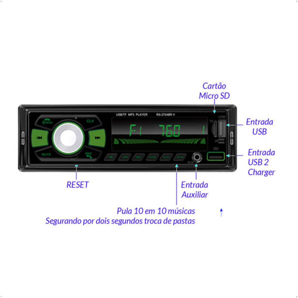 Auto rádio Roadstar Rs-2724br 24 Volts bluetooth usb