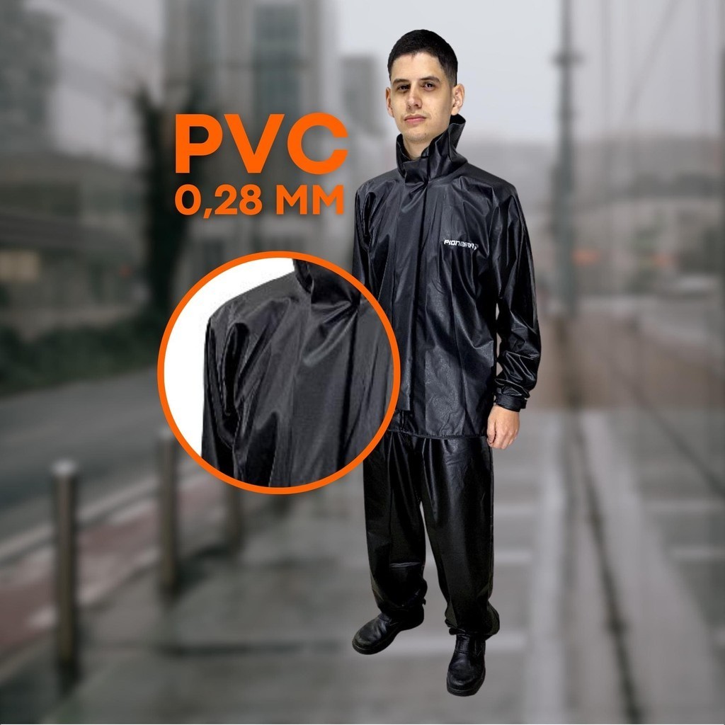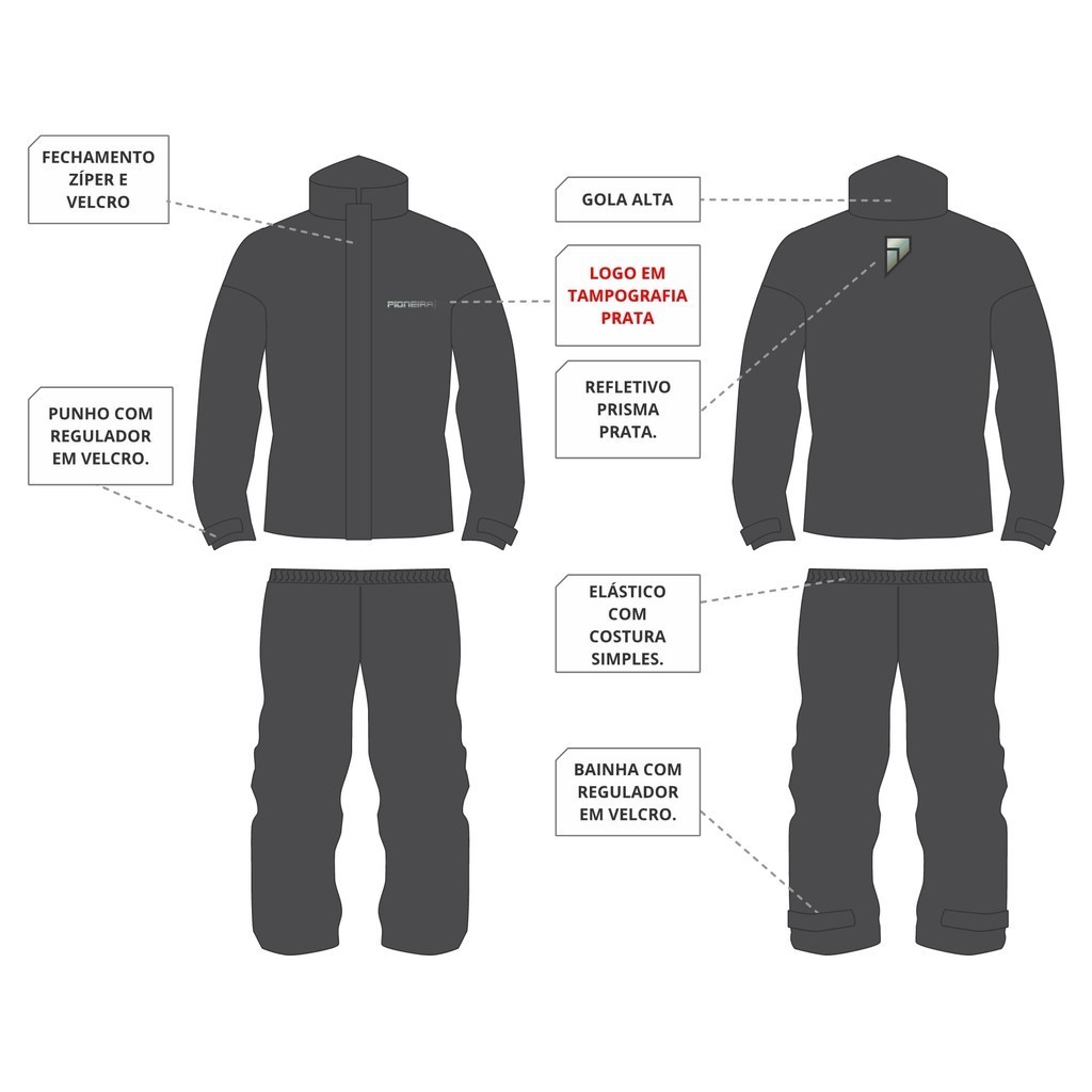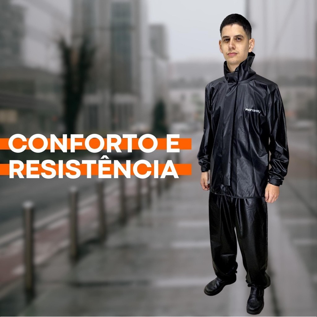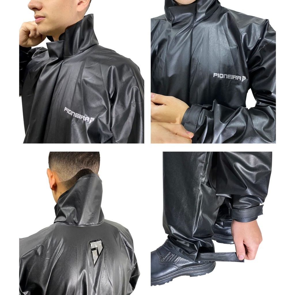 Capa de Chuva Motoqueiro Tamanho G PVC 0,28mm Pop Gola Masculino Preto - Pioneira 2510-PRE-G