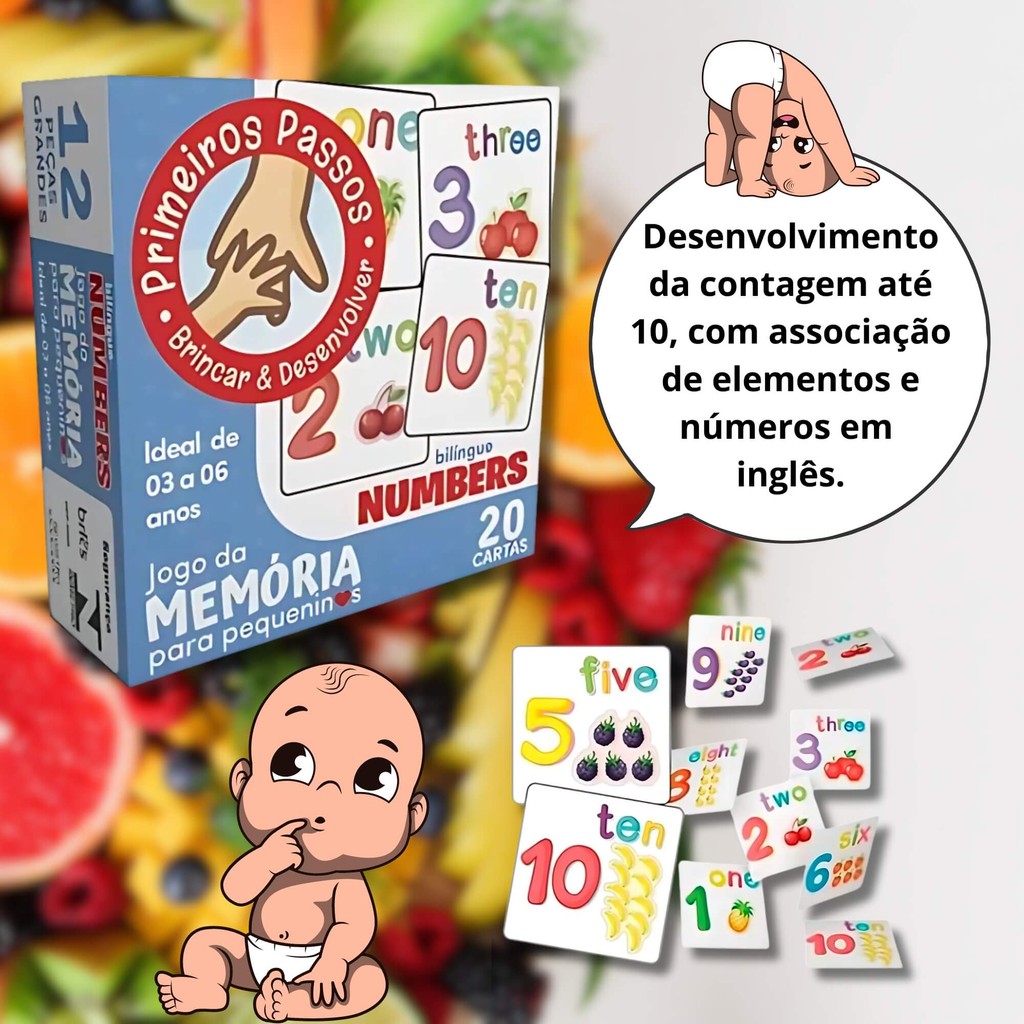 Jogo da Memória para Pequeninos Numbers Interativo Bilingue 20 Cartas Cooper Fun - 00148