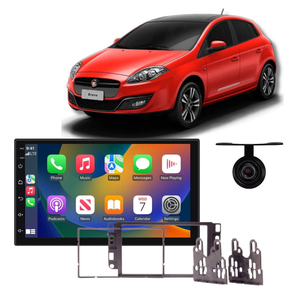Central Multimídia Bravo 2007 a 2016 MP5 7Pol Touch Carplay Android Auto Bluetooth USB + Moldura
