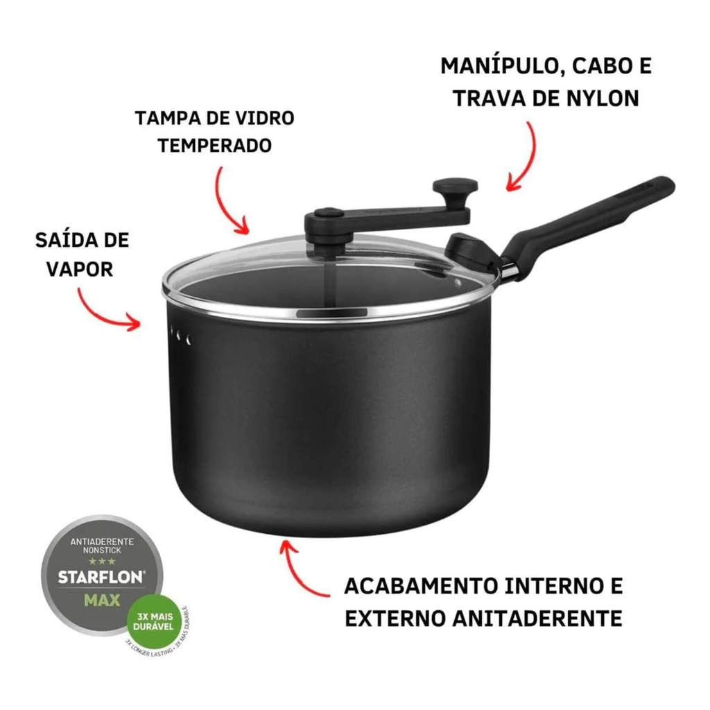 Panela Pipoqueira Alumínio Antiaderente Tampa de Vidro com Trava 4,2L Prata Brinox - 7100/157