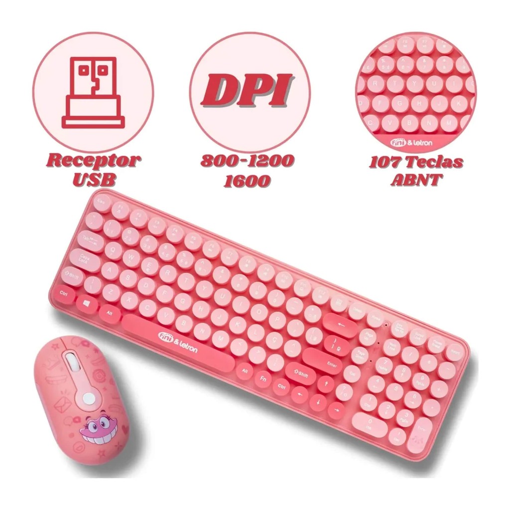 Kit Mouse e Teclado Fini Wireless com Mini Receptor Letron Leo&Leo Leonora - 10323