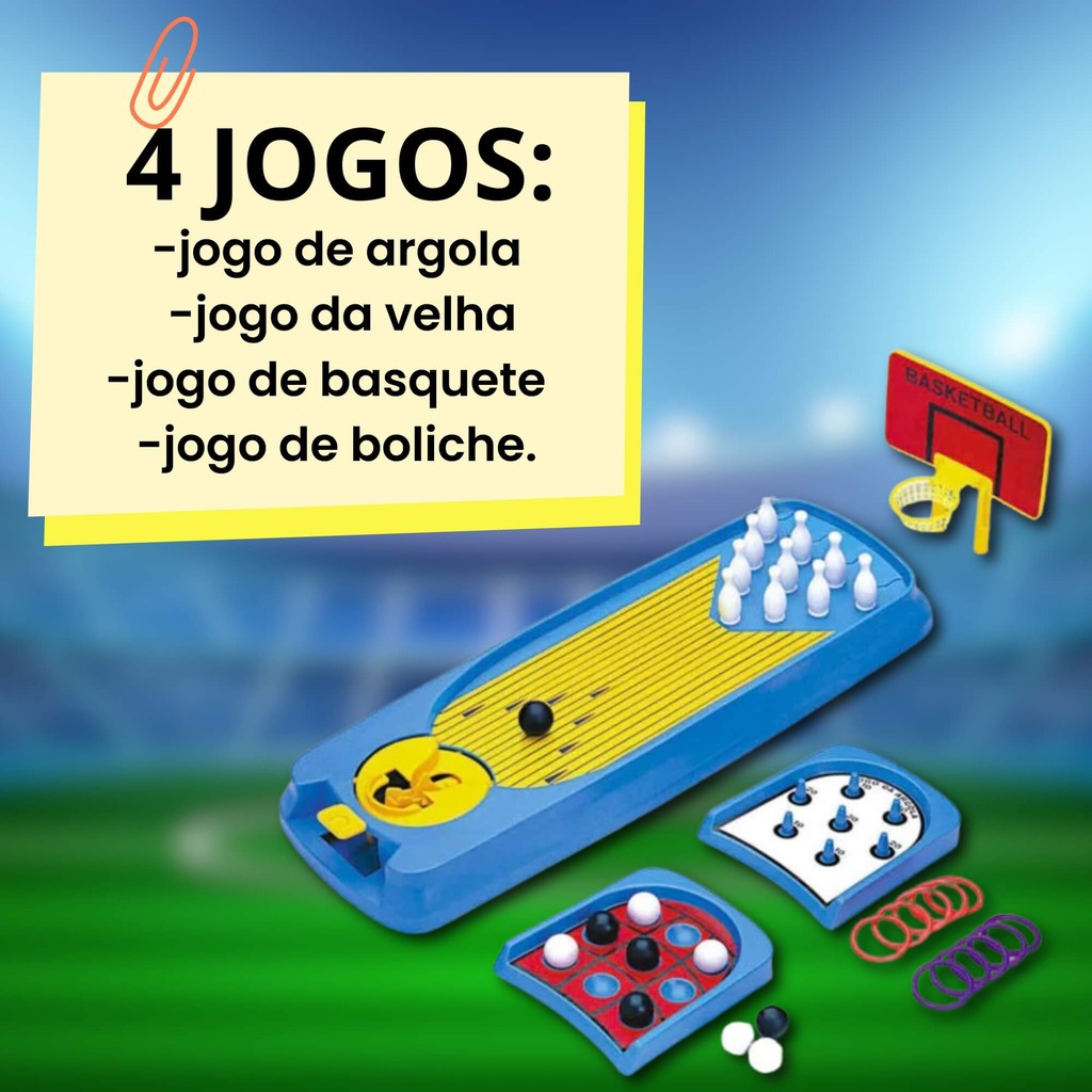 Brinquedo Infantil 4 em 1 Game Mesa de Jogos Argola Basquete Boliche Braskit 210A