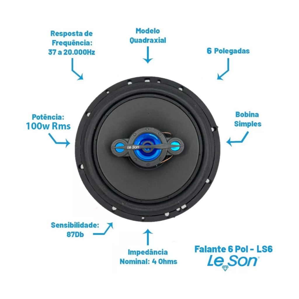 Kit 4 Alto Falantes Quadriaxial 6 Polegadas 200W 4R Preto Leson - 2LSNE0060