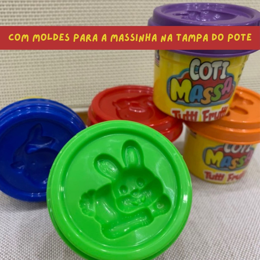 Brinquedo Massinha Coti Massa Tutti Frutti Kit Festa com 5 Potes com Molde na Tampa Cotiplás - 2629