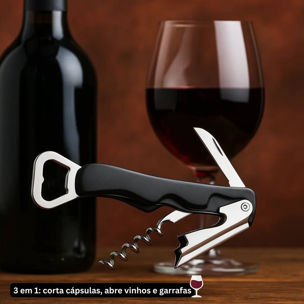 Saca Rolhas Abridor de Garrafas Preto Brinox - 2310/321