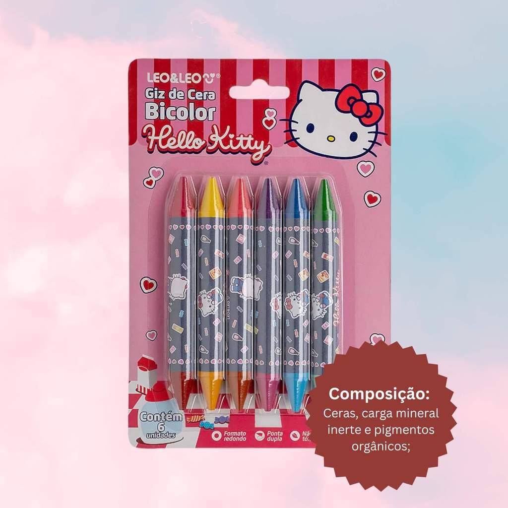 Giz de Cera Big Bicolor Hello Kitty - Blister C/ 6 Unidades e 12 Cores Leo&Leo Leonora - 10590