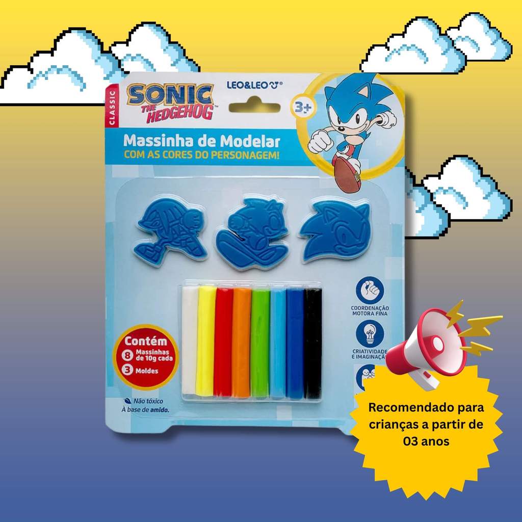 Massinha de Modelar com Molde Sonic - Blister c/ 80g 8 unidades + 3 Moldes Leonora - 10388