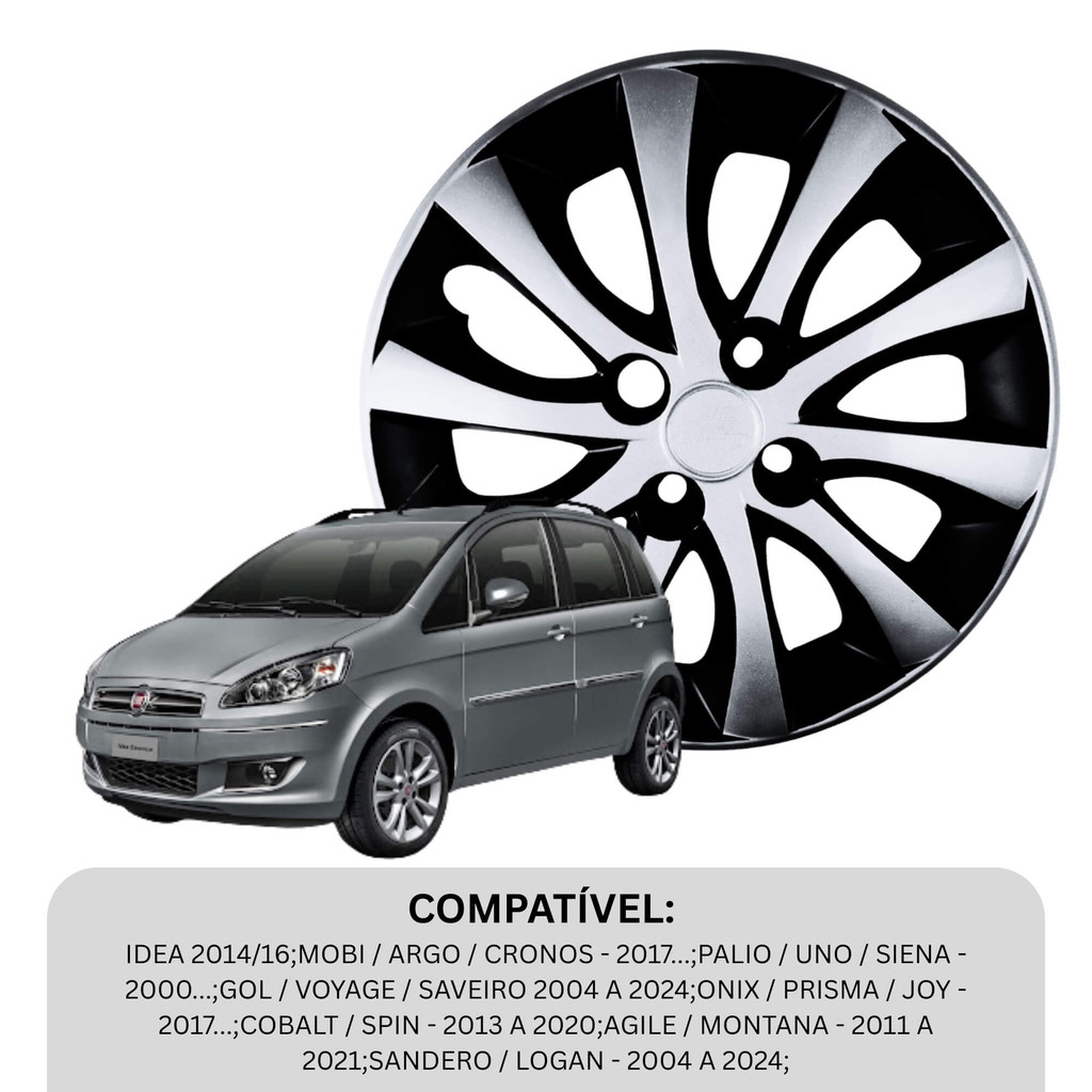 Calota Aro 15" Preto/Prata Mod Idea 2014/2016 Jogo c/4 Calotas Grid - 225CP-PBP-E