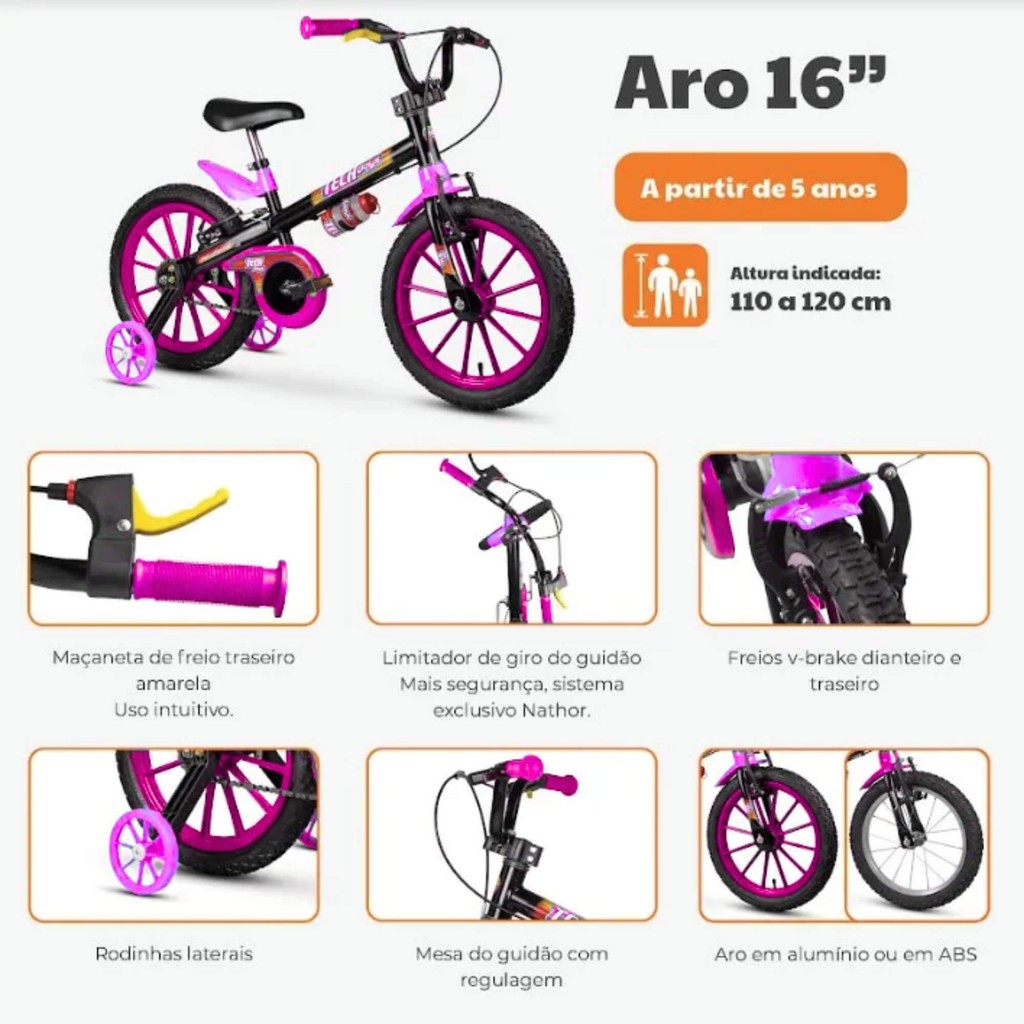 Bicicleta Infantil Aro 16" Barbie Mattel Nathor - 101360160000