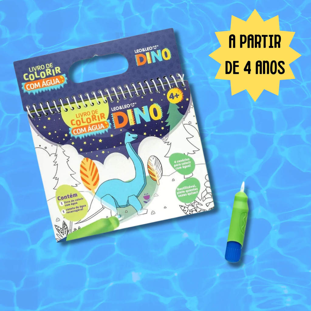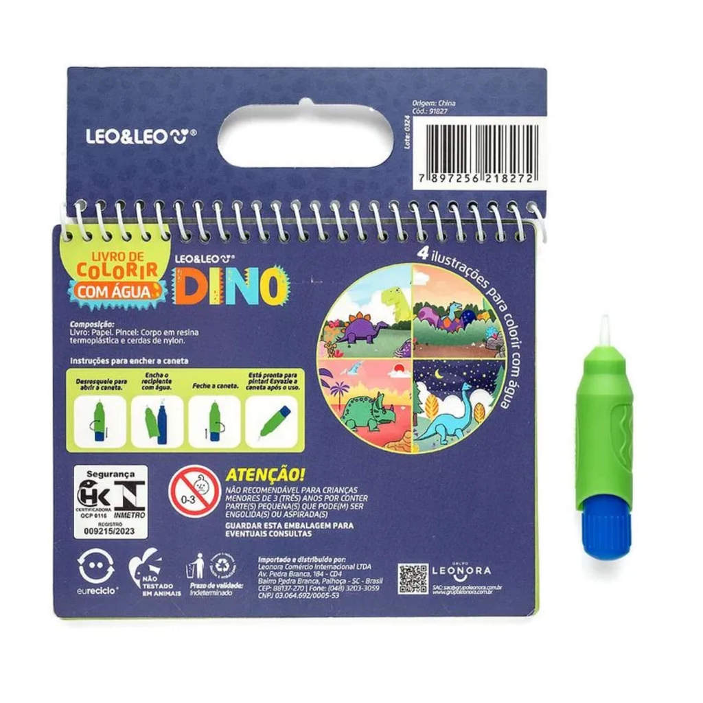 Livro de Colorir com Água Dino com 1 Unidade 4 Páginas + Pincel Leo&Leo Leonora - 91827