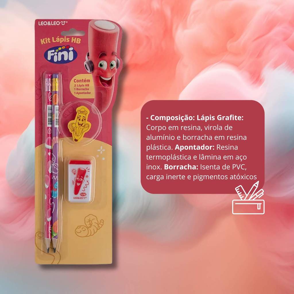 Kit Lápis HB Fini c/ 2 Lápis, Apontador, Borracha Leo&Leo Leonora - 10330