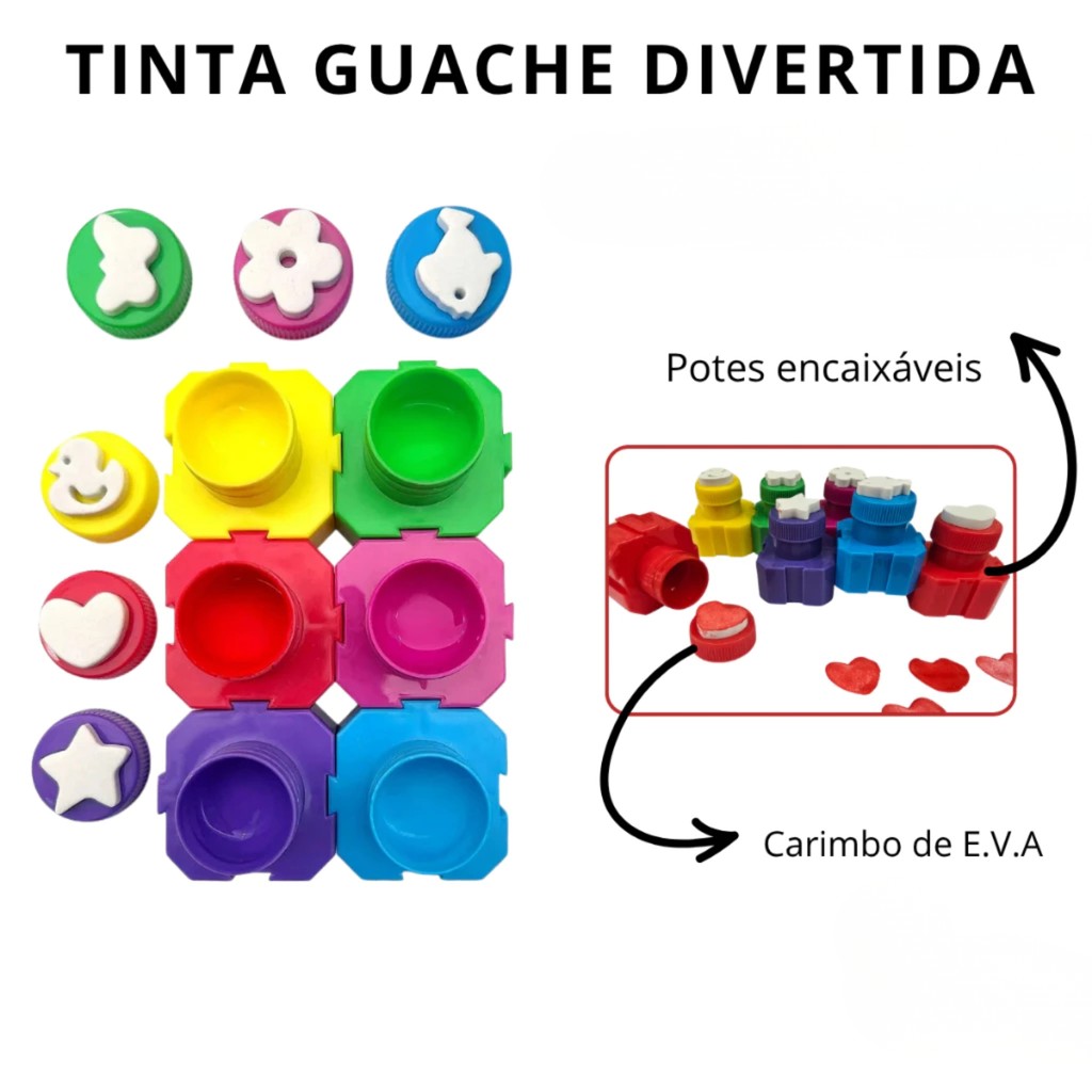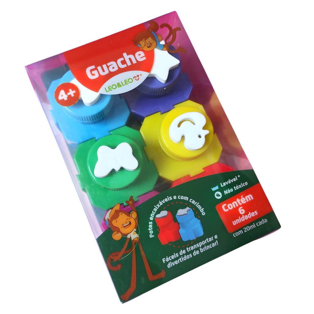 Guache com 6 Carimbos com Pote Encaixável Estojo C/ 6 cores 20ml cada Leo&Leo Leonora - 10174
