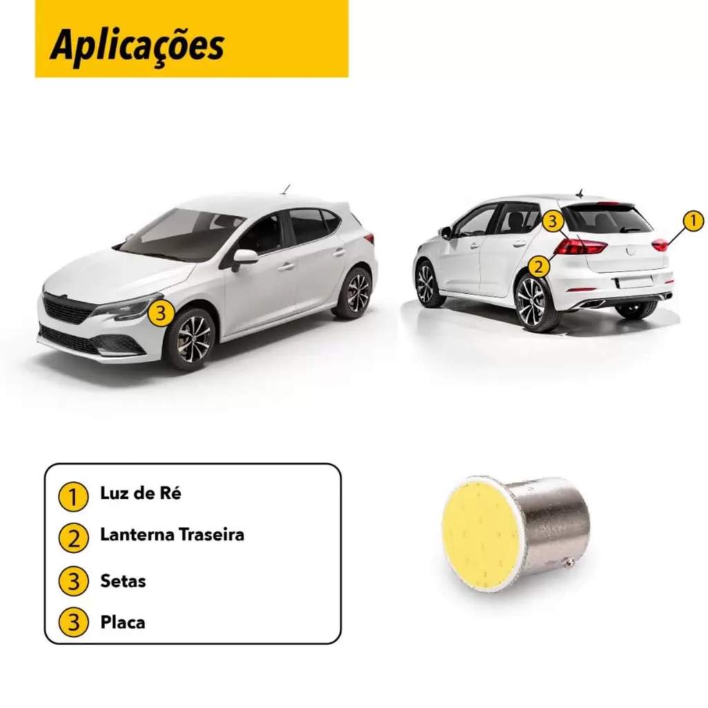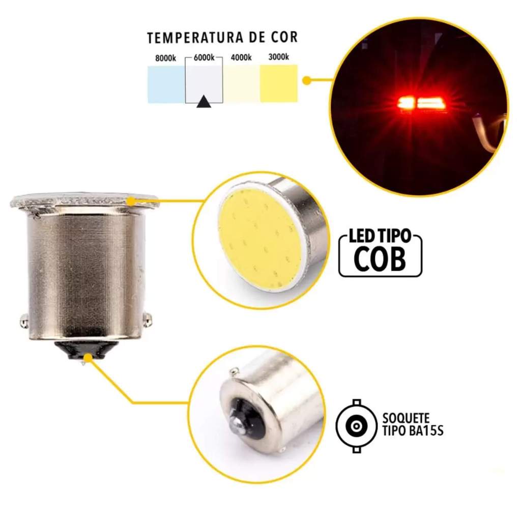 Par de Lâmpadas LED 67 Ba15S-COB-12C 1 Polo 12v 6000k Tarponn - TP-5037