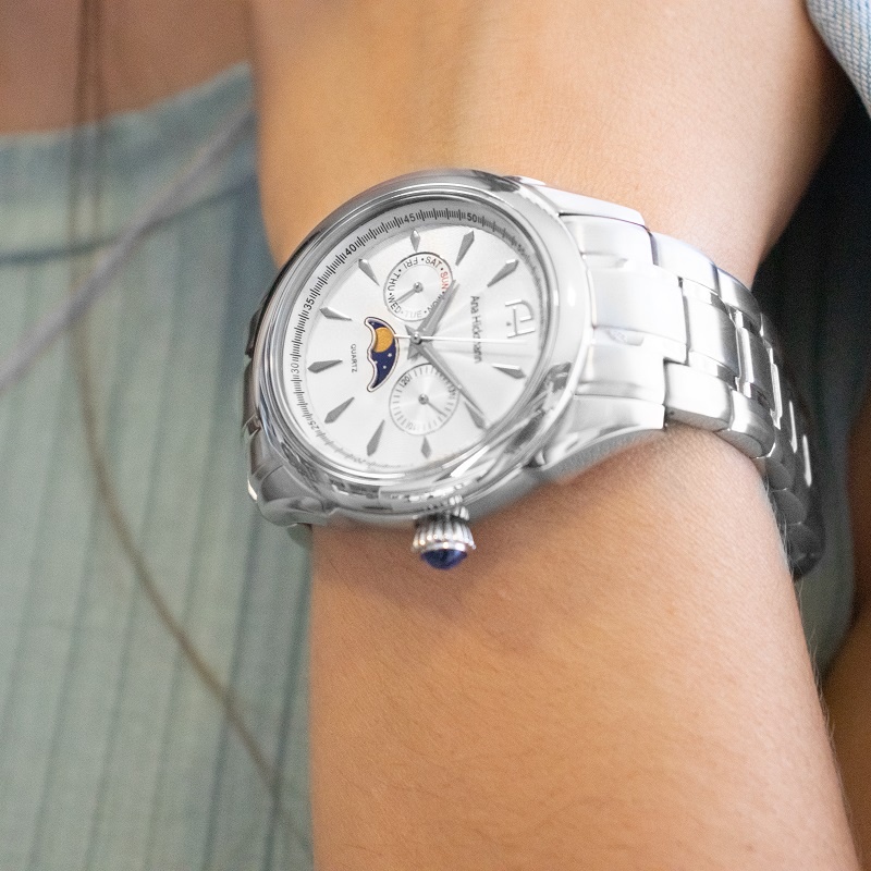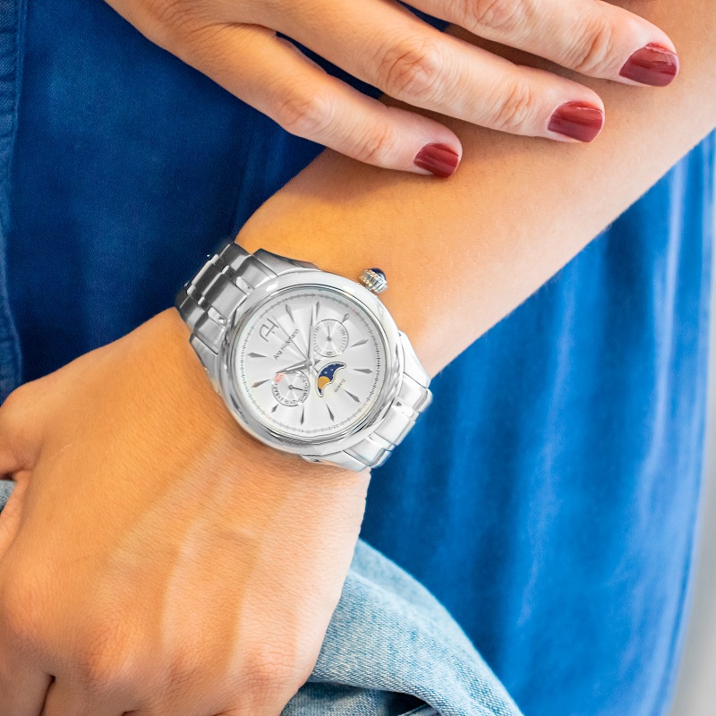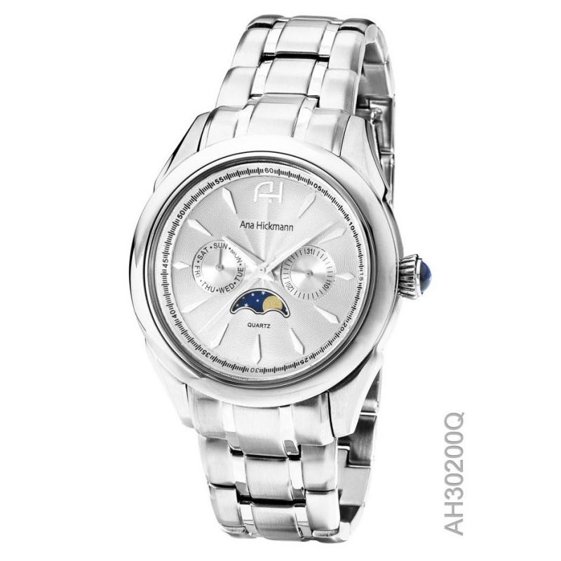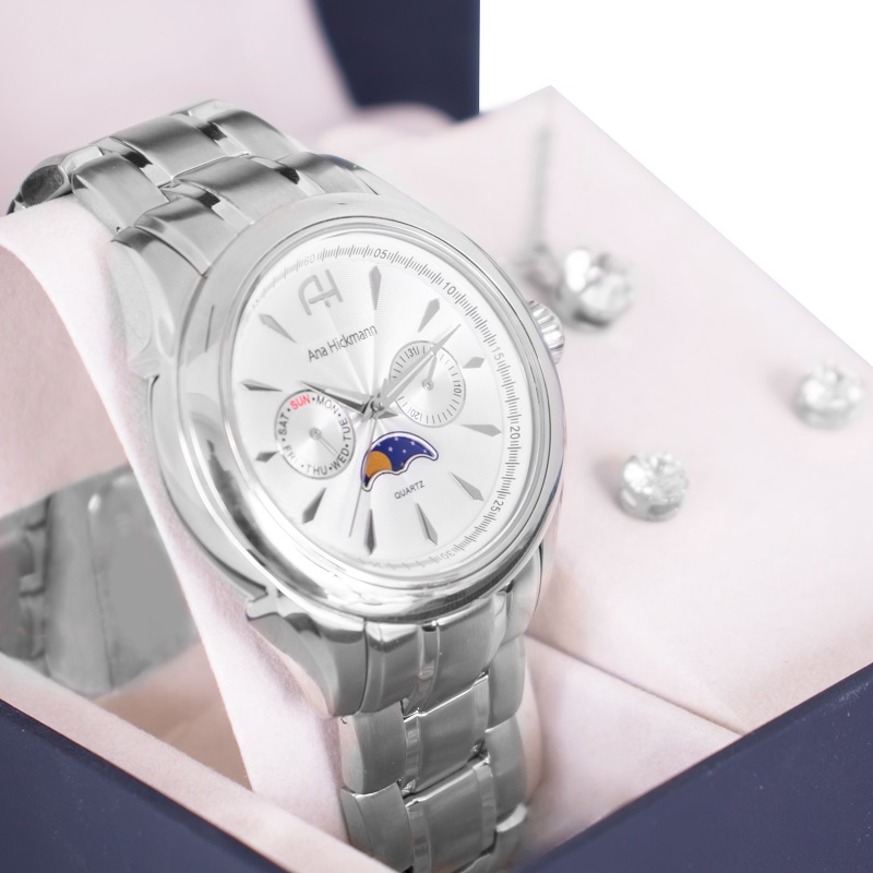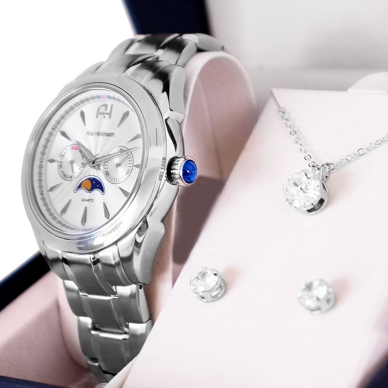 Relógio Feminino Champion Ana Hickmann Prata Fase Lunar A Prova D’Água Original Mulher Esposa Mãe Colar Brincos AH30200Q